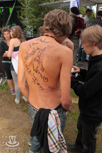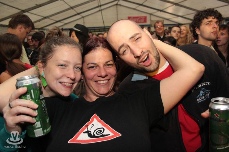 Ami pedig az est folytatását illeti, a Kispál-klónok egymás sejhajába tömörültek, a Vad Fruttik beszivattyúzták a maradék népet a sátor alá, és az elég erős műsor fényét még Likó Marci izzadt felsőteste is tovább emelte, úgy tűnik, észrevették, hogy a célközönségük ettől kevésbé koncentrál az ilyenkor szinte lényegtelen zenei alapra. Utánuk a Kiscsillag következett, és Lovasiék által évtizedes messzeségben teremtetett, művészinek ható, csúsztatott, néhol értelmetlen szövegtagolás - amiben igazán csak a 30Y képes szinte fülsértően remekelni -, első kézből hallatta magát. Ami azt illeti, a 30Y-t nekünk már szinte kínszenvedés volt végighallgatni, de ez elsősorban a kimerültség, és az alkohol számlájára volt írható. Ezúton üzenem fotós kollégánknak, hogy a pulóvere épen és egészségesen várja, és ezer hála érte. Valószínűleg ma is kell, köszi.