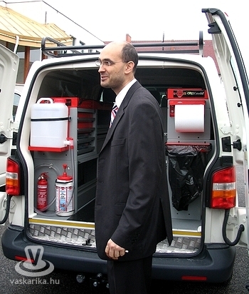 | dr. Virágos Gábor és a speciálisan felszerelt régészeti kisbusz |