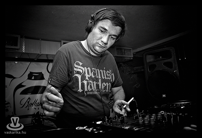 A követező két fotó rá két hétre, még szintén márciusban készült, amikor DJ Palotai előtt játszott a klubban. Nagyon bírtam Gabi zenéit, kimondottan bejött, hogy stílusfüggetlen módon muzsikált. Az elektro-swingtől a technón át a drum and bass-ig sokféle zenével lehetett találkozni egyetlen szettjében. Ami összekötötte ezeket, az többek között az, hogy csak olyan szólt, ami neki is tetszik - köztudott volt, hogy nem lehetett tőle dalt kérni -, az ízlése pedig igényes volt. Ez a stíluskavalkád a védjegyévé vált.