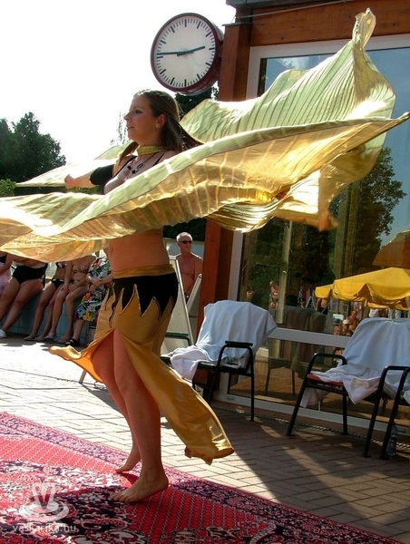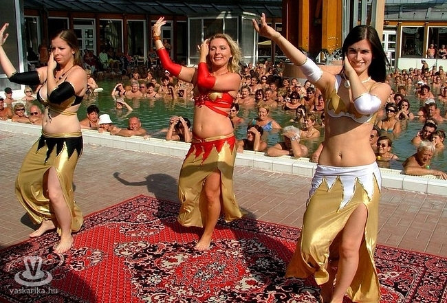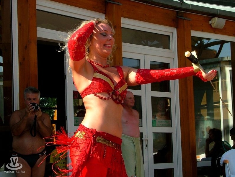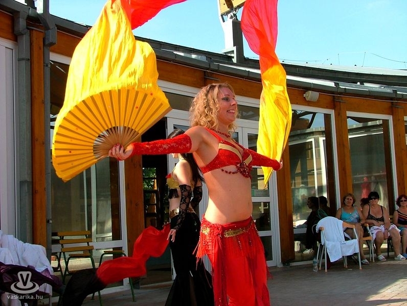 Torna a vízben, tánc a parton: a nyár utolsó (?) simogató sugarait élvezték a Bükfürdőre kilátogató vendégek, akiket a szervezők a szombati és a vasárnapi fellépők előtt is megtáncoltattak a medencében egy kis "viziaerobik" erejéig, és csak ezt követően került sor a fellépők műsorára. Szombaton az Ungaresca Táncegyüttes néptáncolt nagy sikerrel, másnap pedig a Lunah Hastánccsoport adott nívós előadást. Karddal, szalaggal, fátyollal, legyezővel is páratlan élményt nyújtott a trió.