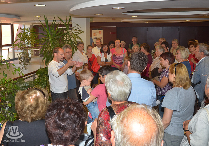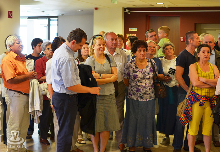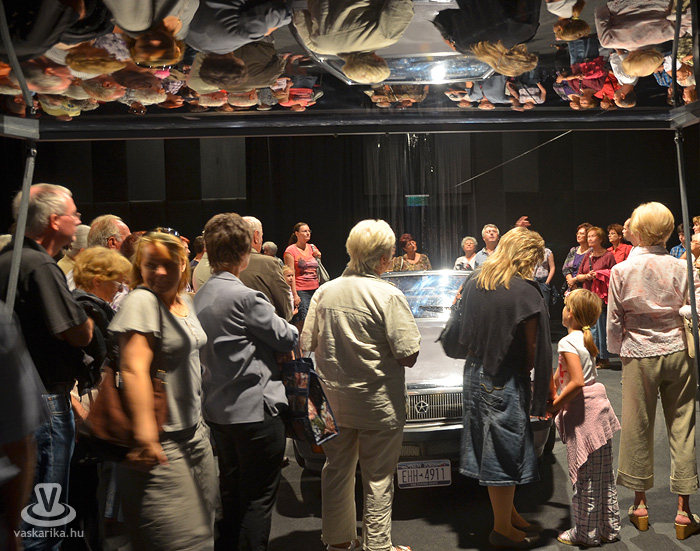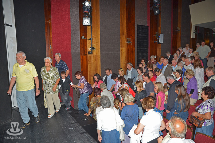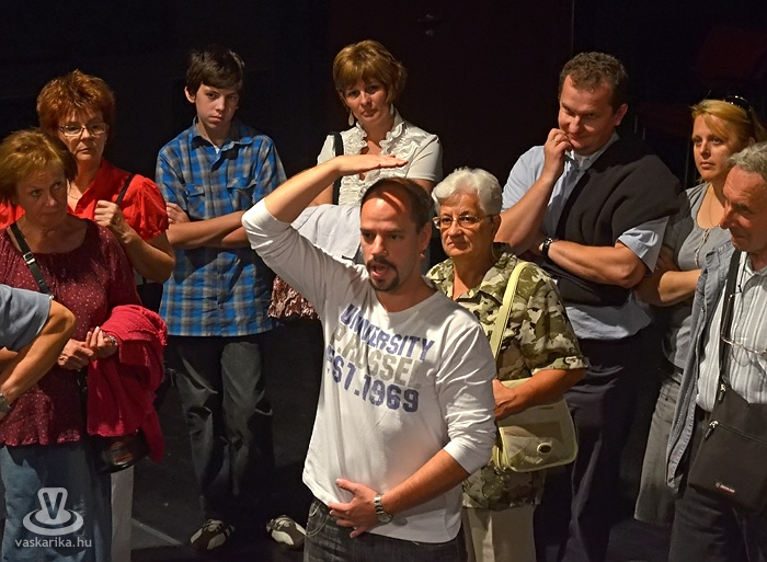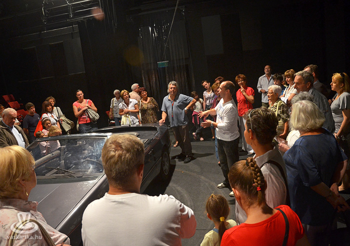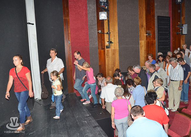 Már a nyitásra népes tömeg verődött össze. 20 főre tervezték az óránkénti színházi bejárást, a kulisszatitkok felderítésére. Az első turnusra mintegy 100 érdeklődő zsúfolódott be, próbára téve az alkalmi idegenvezető, Vass Szilárd hangszálait és a színpad teherbíró-képességét. Mindkettő jól vizsgázott: Szilárd hangja mindenkihez eljutott és a színpadban sem esett kár. A csapat a túra során bejárta a színház csaknem minden rejtett helyiségét, az öltözőket, a mellékhelyiségeket és a hátsó portát kivéve. Jordán Tamás üvegfalú igazgatói irodájára és tárgyalótermére is pillantást vethettünk.