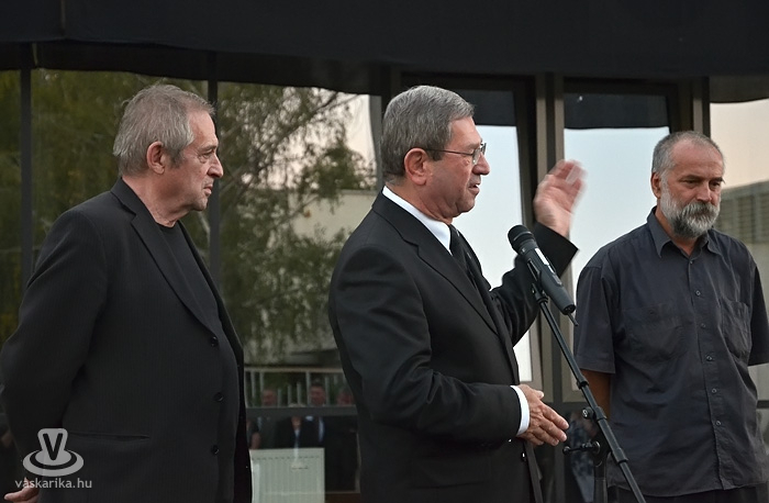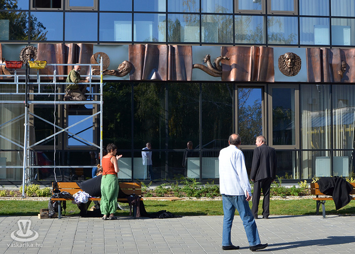Az avatás előtt Jordán Tamás színigazgató humorosan felidézte, hogy élete során több olyan avatáson is részt vett, amelyeken a leleplezés nem ment zökkenőmentesen, és burleszkfilmekre jellemző jelenetek adódtak. Puskás Tivadar, Szombathely polgármestere néhány mondatban méltatta a színház új díszét, majd Jordán Tamással megkísérelték a dombormű leleplezését. Azonban a szalag, ami a fekete vásznat volt hivatott eltávolítani, elszakadt, mintegy beteljesítve a korábbi jóslatot. Így az avatásból erőpróba lett. Gyorsan előkerült egy létra, valamint támogatás a színházi személyzettől, és a lepel megadta magát. (Nehéz kenyér a színházcsinálás, no...) Megmutatta magát a fríz, ami illik az épülethez, és emeli a „csodapalota" fényét.