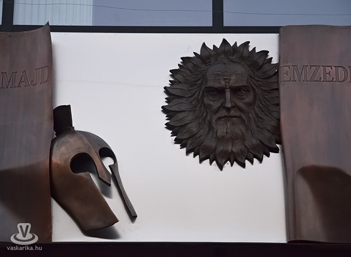 A Veres Gábor által készített homlokzati dombormű is a helyére került a negyedik születésnapra. A frízen feltűnik Weöres Sándor arca egy függöny mögül kikukucskálva, és műve, „A holdbéli csónakos" sziluettje.