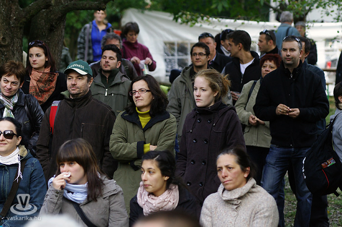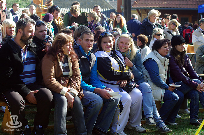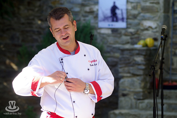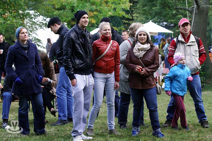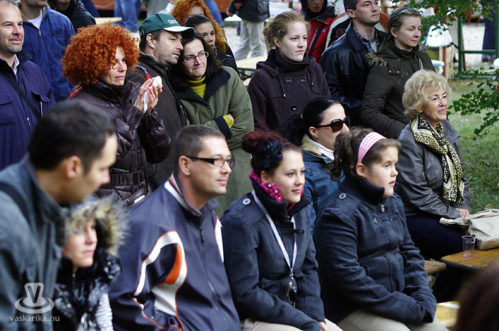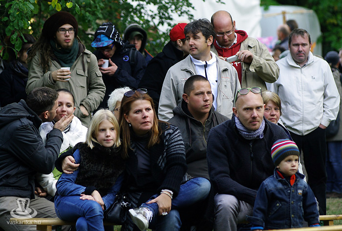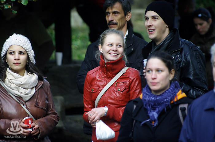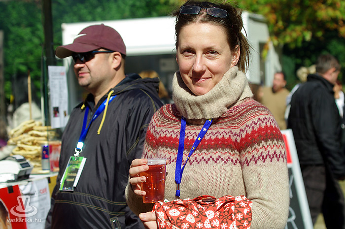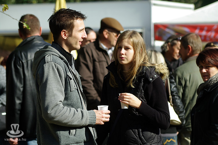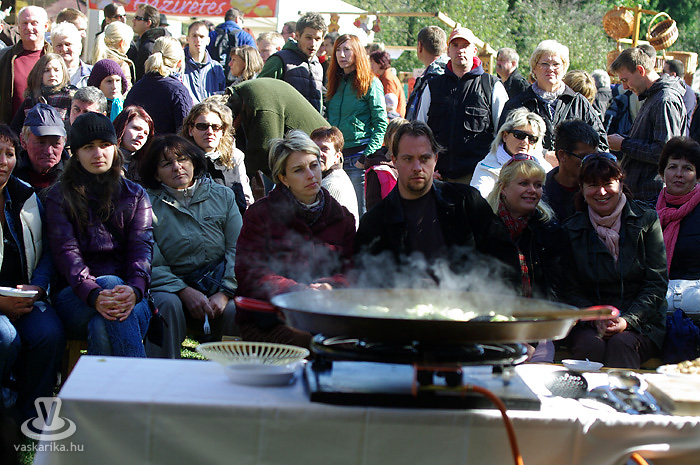 Igen, siettünk, mert Bede Róbert főzősójába mindenképp bele szerettünk volna szippantani. A hagymaaprítás Schumacher-e serényen serpenyőzött, miközben némi agymunkára bírta a hallgatóságot egy-egy dedikált TV Paprika magazinért. Gőzünk nincs - pontosabban csak az van, mert a serpenyőben láttuk -, hogy mit sütött ki, mivel többszöri, mondhatni egész napos kapcsolatot létesítettünk a forralt bor nevű szervezetélénkítő és melegítő nedűvel. Hiába volt szikrázóan napos idő, kellett a polár + széldzseki. Később sült gesztenyével házasítottuk, kellett is mellé a kísérőfolyadék, mivel idén kevés eső érte a gesztenyét, emiatt kicsit száraz volt a 'húsa'. Viszont jellegzetesen finom!