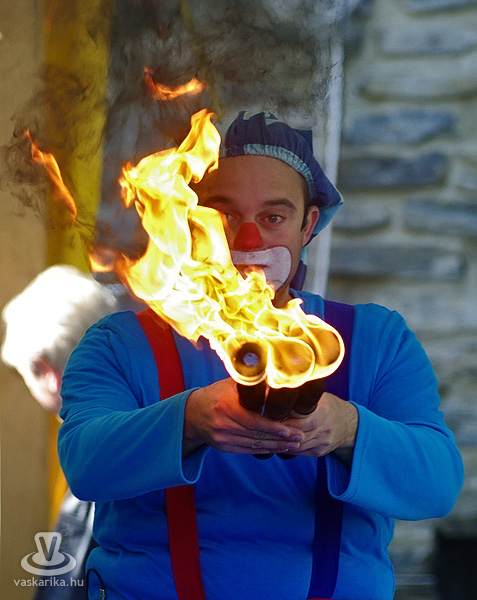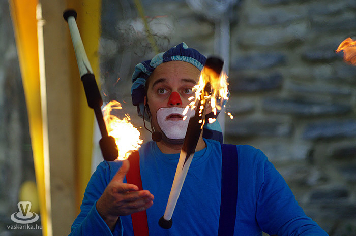 Nemcsak Gulyás László, hanem Zsongi bohóc is jól pendítette meg az érdeklődés "húrhullámait". Mindennel zsonglőrködött, ami kezeügyébe került, legyen az labda, karika vagy égő buzogány. Nekünk ez utóbbi volt ismét a leglátványosabb, a gyerkőcöknek pedig - némi látens piromániát megpedzve - talán a legizgalmasabb.