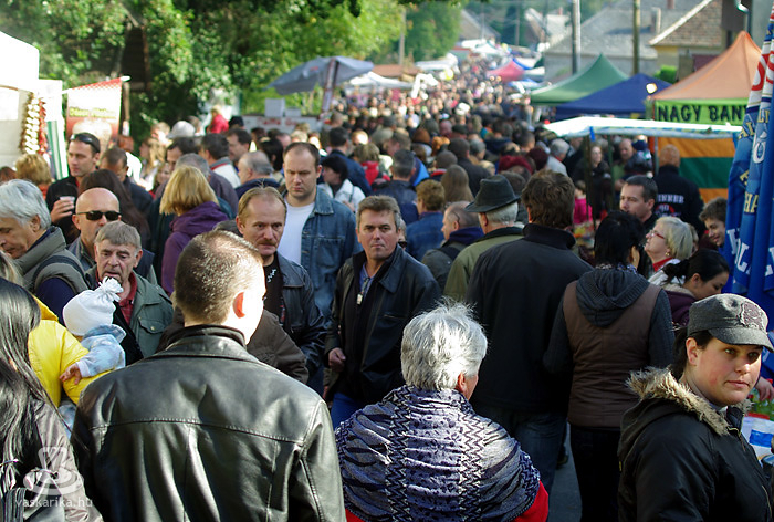 Vasárnap délben érkeztünk, s már az odaút is abszolút pozitív képet hagyott bennünk: semmi araszolás, jól szervezett forgalomirányítás, pillanatok alatt beparkolás, semmi fesztivál-közérzet romboló tényező. Pontosabban, ami a településre beérve "akadályt" jelentett, az maga a főutcán hömpölygő tömeg volt. Nélküle viszont nincs fesztivál, nincs hangulat, úgyhogy gyorsan asszimilálódtunk, és beálltunk tömegnek. A tömegben az a jó, hogy akárhány ember tartózkodik akármekkora helyen, mindig benne van a váratlan "mikro-találkozások" lehetősége. Így a nagy "útvágásban" szívélyesen üdvözölt minket Horváth Miklós, a település polgármestere is.