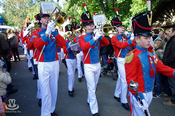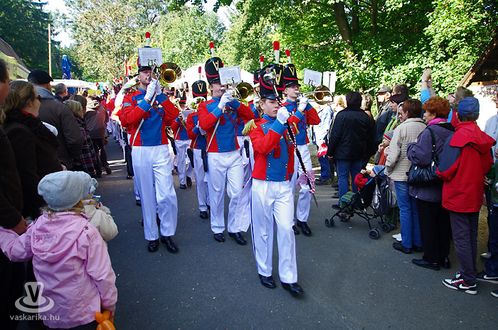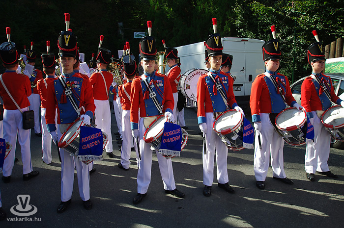 Ezt követően a megjelenésében is látványos, dán Roskilde Garden ifjúsági fúvószenekar mértani alakzatát próbáltuk közös nevezőre hozni a fotóapparáttal. Hogy ez ne csak a mi kiváltságunk legyen, arról a zenekar gondoskodott: a rendezvény legmagasabb pontjáról masírozott végig a falufőutcán, számos, inkognitóját fényképezőgép mögött őrző látogató legnagyobb örömére.