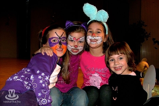 Nem szívesen hagytuk ott a tökből készült finomságokat, de várt bennünk a "töklökő verseny", ahol azon vitézkedtek a gyermekek, hogy kinek gurul messzebbre a Helloween-töke. Aki még "át akart alakulni" félelmetessé, azt a helyszínen arcfestéssel átvarázsolták holtsápadtra, vagy vérrel áztatott arcúra - plasztikai műtét nélkül. Közben a színpadon sikítóverseny vette kezdetét, ahol néha nagyon megijedtünk a denevérnél is élesebb hangoktól. Aztán jöttek a fiúk, lányok táncokkal, és közben csordogált a vér a nézőtér felé. Síri csendben, fogvacogva néztük a produkciót.
