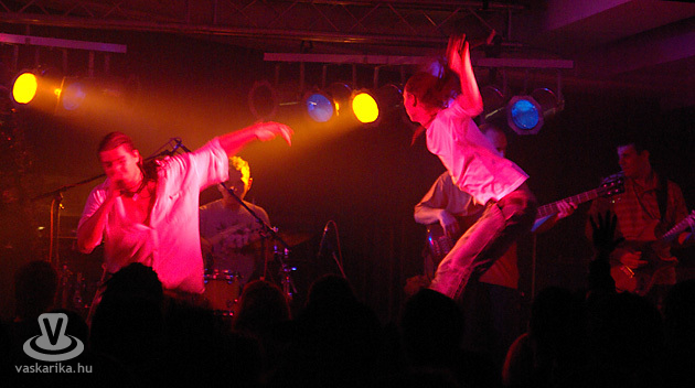A dobosnak (Jancsika) fekszenek a lassabb szögtémák ugyanúgy mint a hirtelen váltásos, hardcoreszerűen pattogó, zakatolós agymenések. Rutinos játékos, többek között az eszement Fürgerókalábakból ismerhetjük őt. A bassgitáros, Lee szintén tökéletes játékkal járul a zenekar lüktetéséhez. Benji a gitároknál a Tigris-ből ismerhető, és mint tudjuk, a Tigris nagy - mármint zenekar -, minden szempontból. A billentyűknél hátul Jenny, nem marad el semmiben sem az eddig felsorolt tagoktól, hacsak nem abban, hogy kicsit háttérbe van szorítva. Elérkeztünk a felállás szempontjából kényes ponthoz, mégpedig a szőke szintis hölgy leárnyékolójához, Verához, a vokalistához. Félreértés ne essék, nem a hangjával volt bajunk, hanem amit teljesített. Pontosabban, amit túlteljesített. Végigtáncolta-énekelte-csörgőzte a mutatványt, de néha olyan túlzásokba esett, ami már-már a viccesség határát súrolta. Ez még bele is fért volna, az azonban már nem, hogy annyira hiteltelennek tűnt, amennyire csak lehetett - ha holnap egy Kozsó által életre simogatott csapatban látnánk, sem csodálkoznánk el nagyon. A végére hagytuk a társ Mc-t, Mr. Boomsmile Lego Man-t, nem véletlenül. Tökéletes párost alkotnak a főemberrel, szinte szavanként képesek adni-venni a szövegeket egymásközt. Az első benyomásunk - ami később is megmaradt -, hogy ez a srác elbírna maga mögött egy zúzós metál brigádot is. Mind mozgáskultúrában, mind gesztusokban, és mondanivalóban is a 90-es évek nagy hc-hiphop-metal fúziós bandáinak frontemberei jutottak eszünkbe róla. Főképp a Rage Against The Machine, a Clawfinger, a Stuck Mojo, a Pro Pain illetve a White Zombie képviselte vonalra gondolunk elsősorban. Magasra copfolt, hetyke rastaszerű haj, szikár arcvonások, mindent elsöprő szuggesztív előadásmód - keménységet adott, és megtestesítette a szabadságharcos nevet. Copy pedig hozta a tőle megszokottat - félig kigombolt ingben, óriási nyakláncban, nagy hanggal érkezett, és úgy is maradt végig.