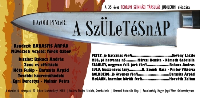 Premier előadással ünnepli 35 éves jubileumát a Ferrum. December legelején két nap adott a darab megtekintésére. Kitűnő választás a társulat részéről ez a mű: a születésnap mindenkire kimerítő-kielégítő feladatot mér. A színészi játék gesztusai, mimikái ragyogóak a szereplőkön. A rendező elképzelése a kiváltó hatásról pedig bekövetkezik, mert a mű izgalmasságát a végsőkig fokozza.