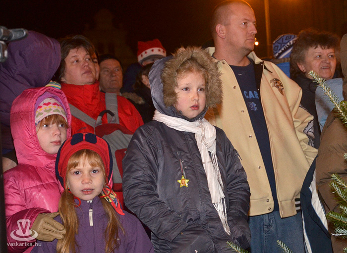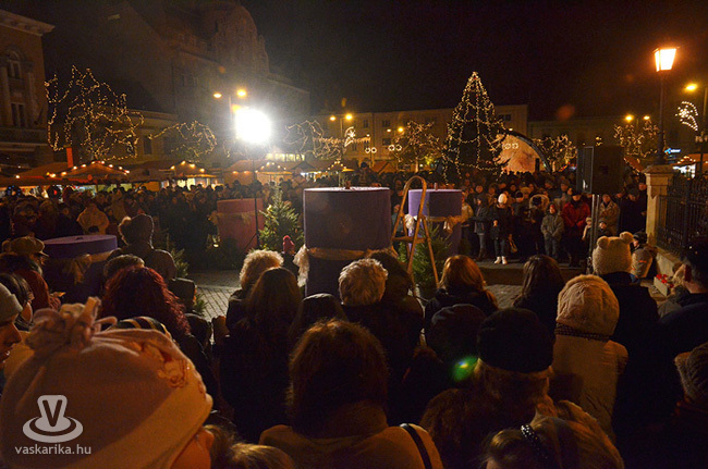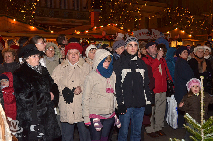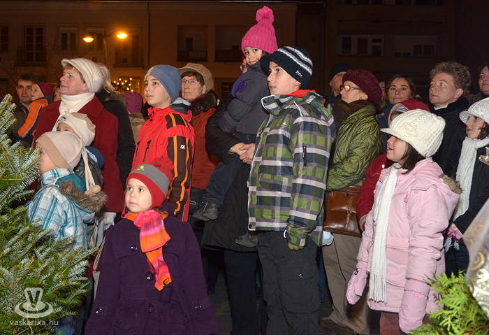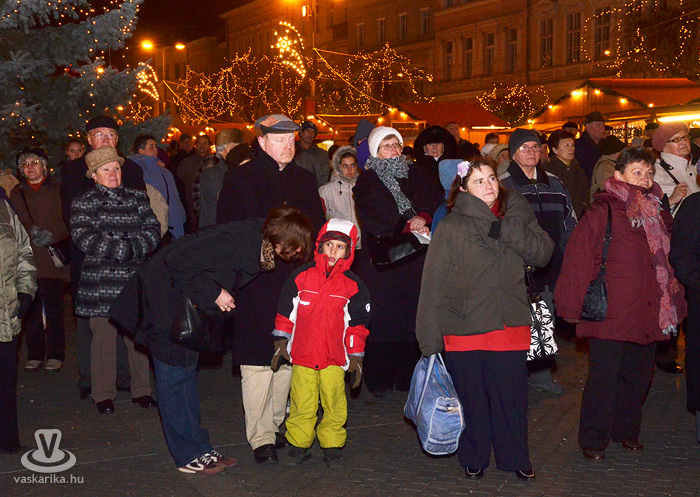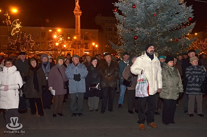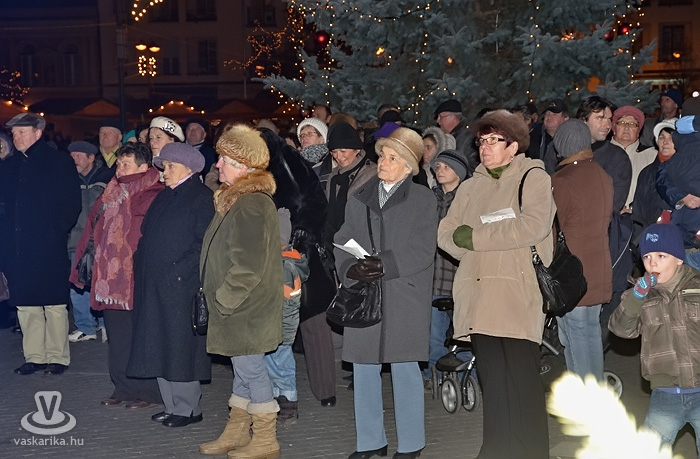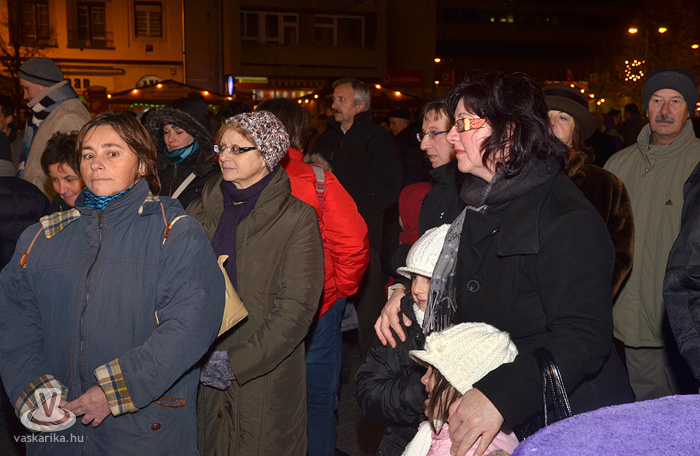 Az első adventi gyertyagyújtásra még a tavalyi, szép számú közönségnél is többen jöttek ki a Fő térre. A 0 fok körüli hőmérséklet sem tántorította el az ünneplőket, bár a kisgyermekesek közül többen a hideg miatt nem várták ki a gyertyagyújtást.