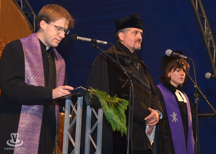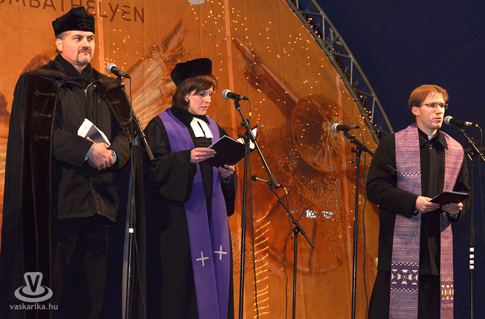 Az adventi koszorú első gyertyáját Dr. Puskás Tivadar gyújtotta meg ökumenikus szertartás után. A rendezvényt a Vasi Népdalstúdió „Megjövendölve volt régen" című karácsonyi összeállítása zárta.