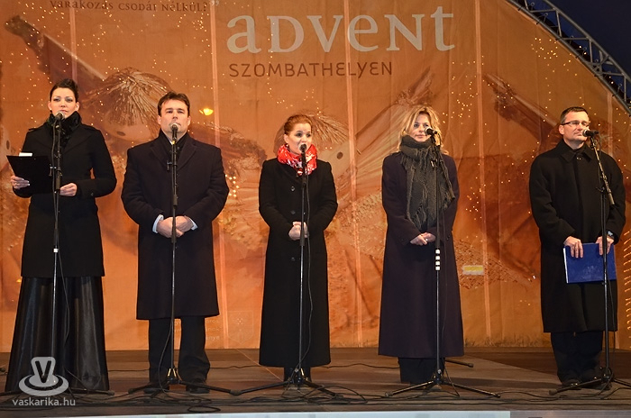 November 26-án este Szombathely Fő terén a Polgármesteri Hivatal Versmondó Stúdiójának karácsonyi műsora és az ökumenikus szertartás után Dr. Puskás Tivadar polgármester meggyújtotta az adventi koszorú első gyertyáját. A hidegben jól esett a forralt bor a Vasi Népdalstúdió karácsonyi műsora hallgatása közben.