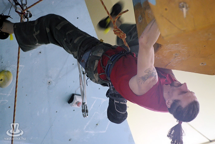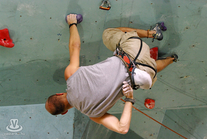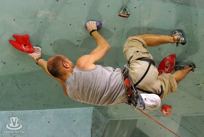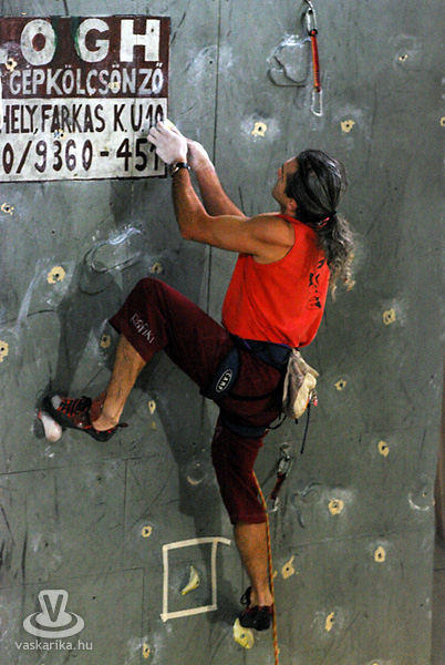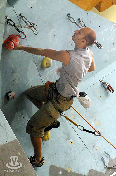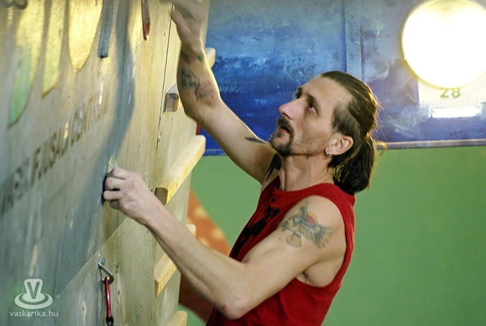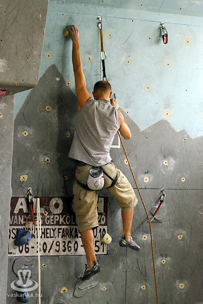 Persze, szerintem mindenki hobbimászóként kezdi. Természetesen célszerű és előnyös, ha valaki kiskorában kezdi, de én például huszonöt évesen „tapadtam" először a falra, ehhez képest tizenkettedik éve versenyzem. Normál esetben hatéves kortól van verseny, de ismerek olyat, aki négyéves korától versenyzett, tehát három éves korától mászott stabilan. Húsz-harmincéves korukig versenyeznek általában, de akár az én példámból, akár a veszprémi edzőjéből kiindulva - aki negyven év felett jár és aktívan versenyez -, nem lehet belőni a „visszavonulás" idejét. Sőt, van egy 1962-es születésű válogatott versenyzőnk is.