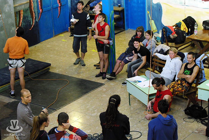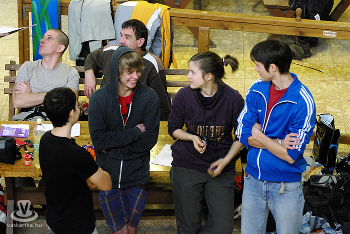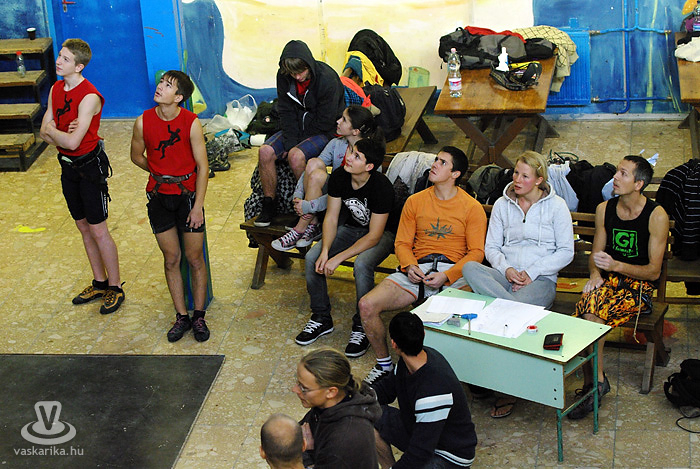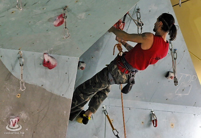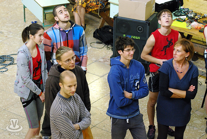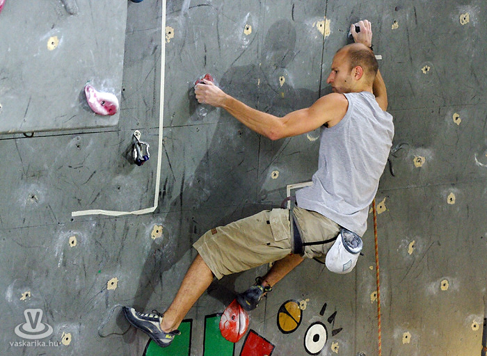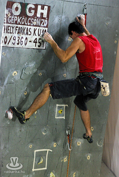 Ma összesen 14 versenyzővel indultunk, fiúk, lányok vegyesen, ami kevésnek számít, többen szoktak lenni. Ennek az az oka, hogy hirtelen rendeztük meg a versenyt - beugró helyszínként, így csak egynapos lett. Erre a mostani országos versenyre Szegedről, Pestről, Veszprémből és természetesen Szombathelyről vannak versenyzők. A helyi Mászóka SE-t öt fő képviseli, a pályát én építettem, tehát én nem indulhatok. Az idén egyébként ez az utolsó előtti országos verseny, két hét múlva Veszprémben rendezik meg az utolsót, ahol a Mászóka SE is indul.