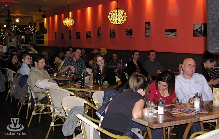 Ahogy hátranéztünk a közönség soraira, a mosolygós arcokról, ritmusra járó lábakról, kezekről megállapíthattuk, hogy a vidám zenekar a jól kiválasztott dalokkal és Timi erőteljes, gyönyörű tiszta hangjával hamar belopta magát a hallgatóság szívébe. A hangulatos kávézóban egyetlen szabad hely sem maradt, sokan voltak kíváncsiak a tehetséges és lelkes zenészekből álló kis csapat koncertjére.