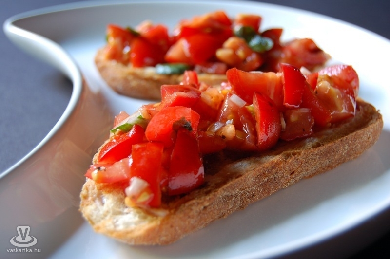 Keverjük össze a paradicsomot, az olivaolajat, a bazsalikomot és a sót, és hagyjuk állni négy órán át! Ne fagyasszuk, mert a paradicsom nem lesz jó ízű! A fenti salátát helyezzük meleg toastkenyerekre és azonnal tálaljuk.