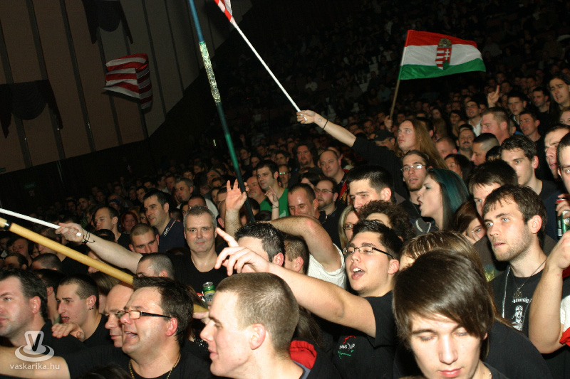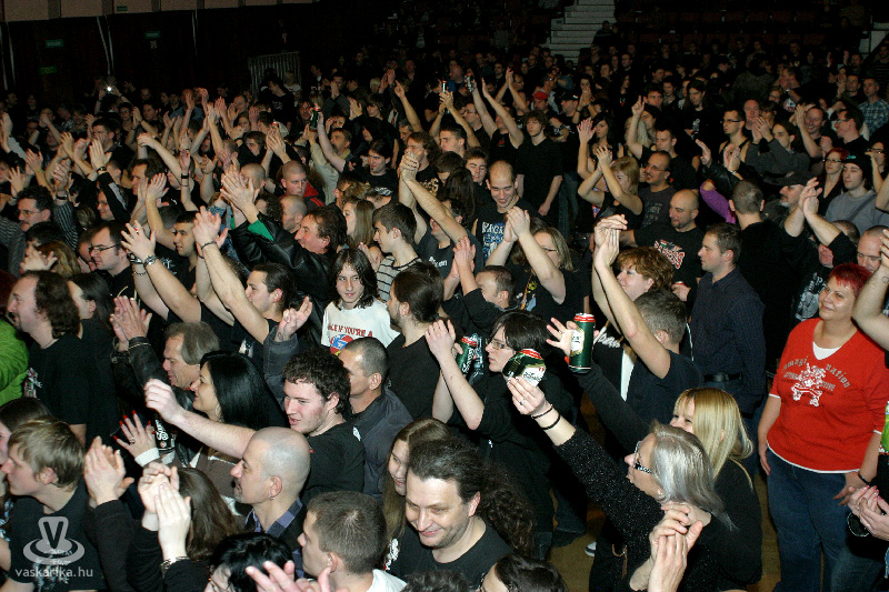 Ha nem is vérszagra, de gyűlt az "éji vad": családapák, akik gyermekük kezét fogva érkeztek, férjek és feleségek, tizenéves elsőkoncertezők, ősz szakállú nagypapakorúak - mindenkivel szembetalálkozhattunk a Sportházban. Tény, hogy a nemzeti rock műfajába folklórelemeket csempésző Kárpátia képes családokat megmozdítani, kellő identitástudattal megáldott fiatalokat a nemzeti öntudatra nevelés mágneses terébe vonzani.
