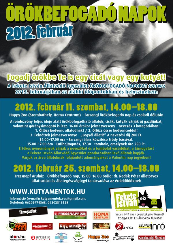 Febuár 25-én, szombaton 14.00-18. 00 óra között a FIÁE ismét örökbefogadó napot tart a Fressnapf Állati Áruházban, a Szombathely Centerben. Továbbra is nagyon sok kutyus várja szerető gazdiját. Az állattartóknak tanácsokat ad dr. Radák Péter állatorvos.