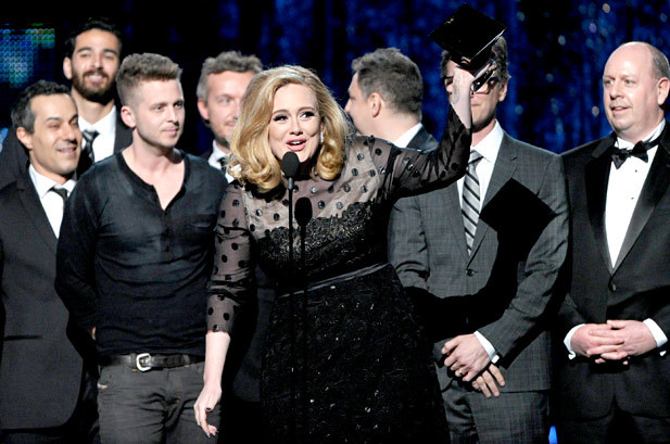A fiatal énekesnő leiskolázta a zenei ipar nagyágyúit. Hat kategóriában kapta meg a Grammy-t: az övé lett az év legjobb albuma, a 21, amely a legjobb pop albumért járó díjat is megkapta, az általa szerzett Rolling in the Deep lett az év dala és felvétele, ő lett a legjobb pop szólóénekes a Someone Like You című száma előadásáért, s őt jutalmazták a legjobb rövid videóért is.