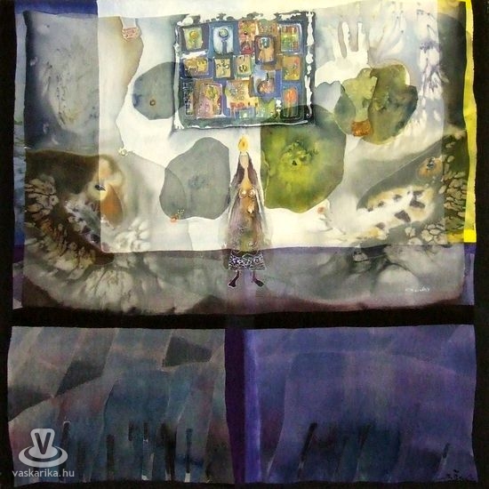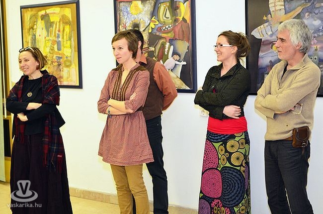 Kovács Géza, a bábszínház igazgatója tárlatnyitó beszédében azt kérte, ahogy végignézzük a képeket, nyissuk meg a lelkünket, fantáziánkat, és próbáljunk meg minden képhez egy történetet kitalálni. Neki is történetek jutottak eszébe, a szakmából adódóan bábszínházi történetek. Úgy látja, minden képben egy-egy mese, egy-egy történet fogalmazódik meg, s ha 3D-ben kivetítenénk, akkor egy fantasztikus bábszínházi előadást lehetne alkotni belőlük. A direktor a végtelen képzeletet megnyitó színességről beszélt, a selyemről és a színekről. Az anyag lengeségéből, tisztaságából, könnyű szerkezetéből adódóan már-már erotikus pillanatok születnek, hiszen nem mindig uralható a festék által, mert egyik pillanatról a másikra szétfolyik az anyagon. Elmondta, amikor felkérték a kiállítás megnyitására, elgondolkodott, hogy kitől is idézzen, és csak egyetlen név jutott eszébe: Weöres Sándor, a végtelen fantázia és képzelet egyeduralkodója.