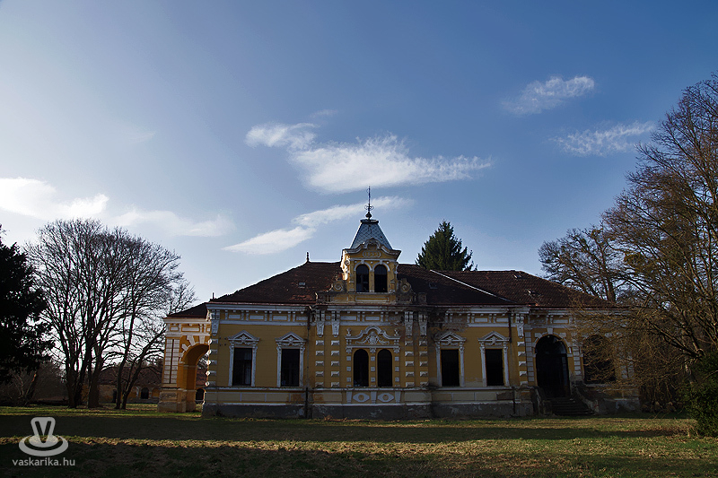 Bejutottunk, bejártuk, besírtunk... A Batthyány család kastélya 1893-ban épült, barokk stílusban, később eklektikus stílusban átépítették. Iskola, vagy nevelőotthon funkciót töltött be, aztán pusztulni hagyták. Tíz éve olasz tulajdonosa van a műemlék épületnek, ám nagy parkja, és maga a kastély is elég siralmas képet mutat belülről.