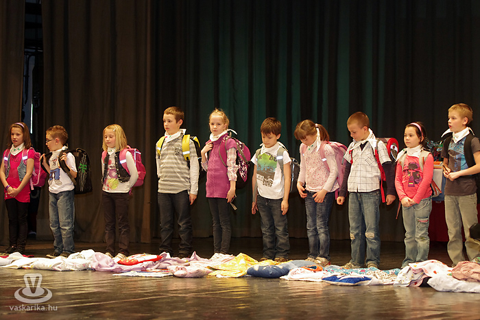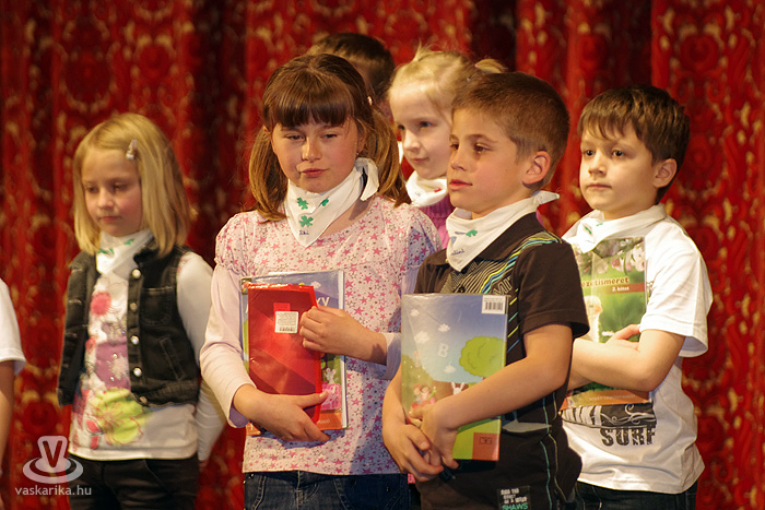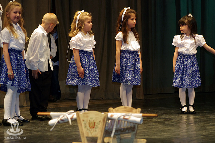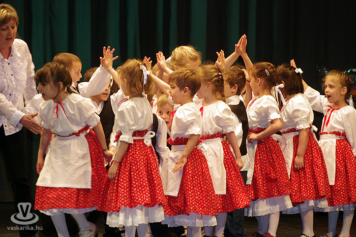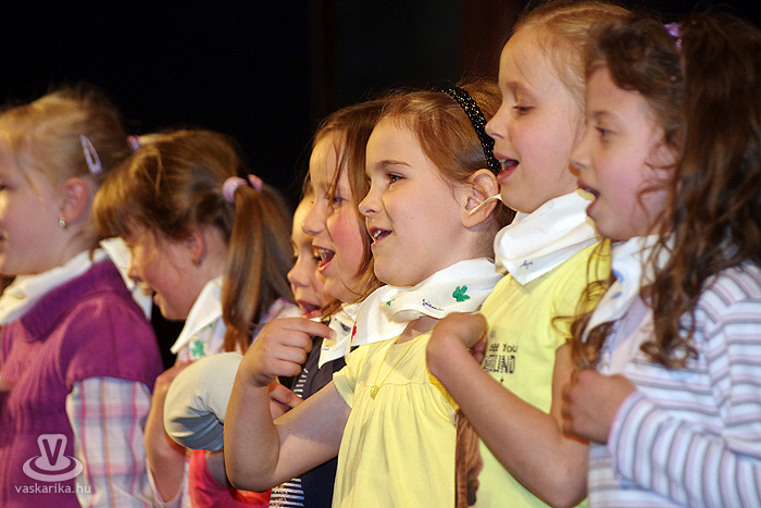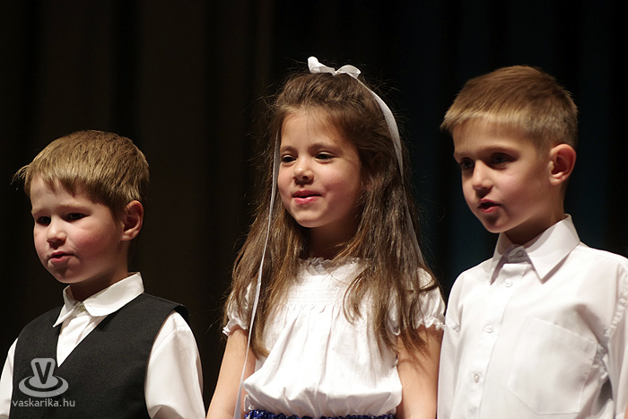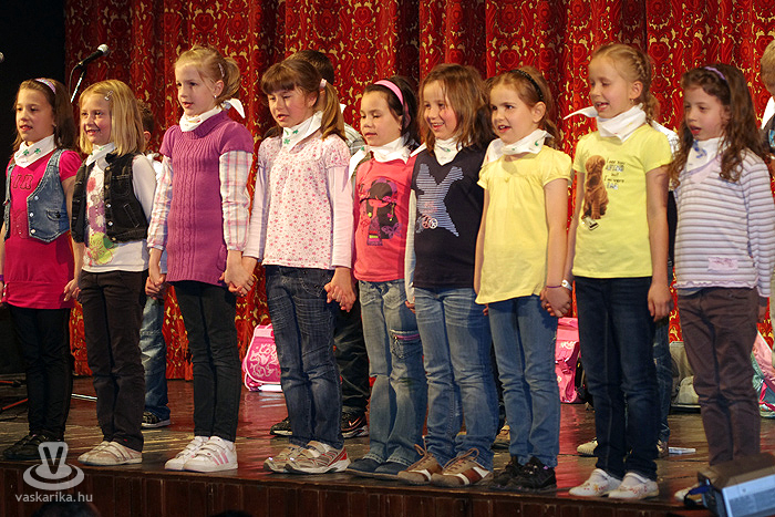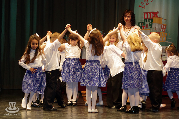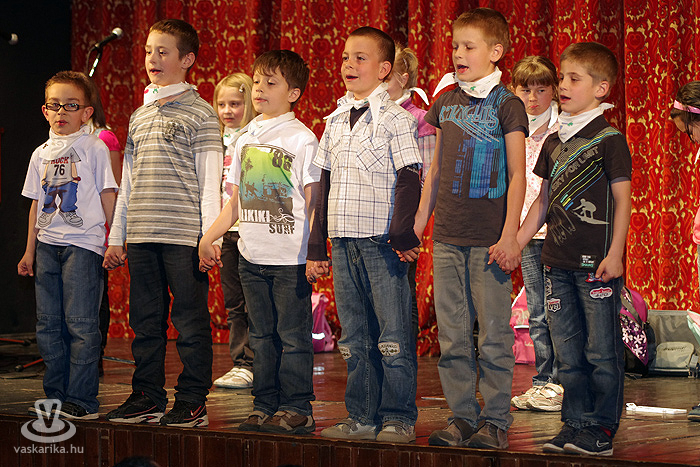 Ezek után a legkisebbek, az óvodások műsorát láthattuk. Fodros szoknyába öltözött kislányok, és fekete nadrágba bújt „fess" kisfiúk mondták hiba nélkül a verseket, énekelték a bizonyára rengeteg munkával tanult énekeket. Utánuk az általános iskolák műsorai következtek. A Somogyi Béla Általános Iskola tanulói saját szavaikkal, és versekkel mondták el, mit jelent nekik városuk. Az Olcsai-Kiss Zoltán Általános iskola elsős tanulói egy napjukat mesélték el nekünk. Megtudhattunk sokféle okosságot, ami néhol mosolyt, néhol hangos nevetést csalt a szép számmal megjelent, érdeklődő közönség arcára.