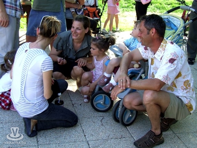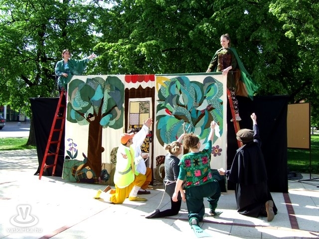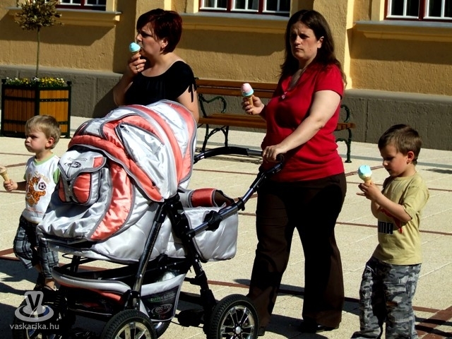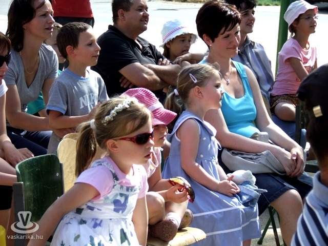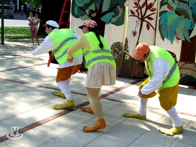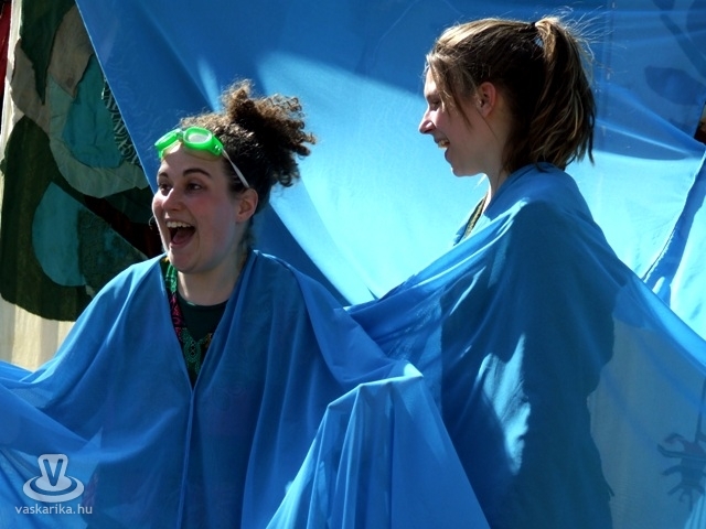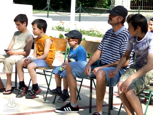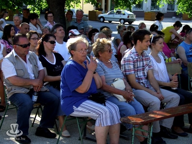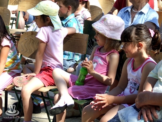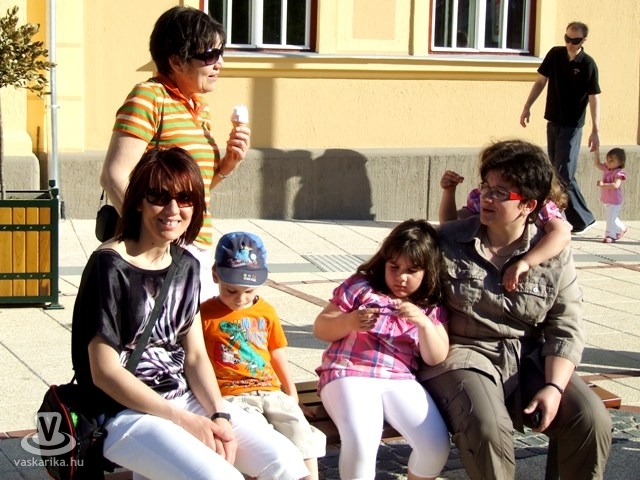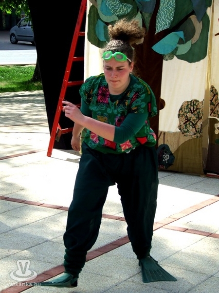 A döntők után a Promenádon folytatódott a műsor. A celldömölki Soltis Lajos Színház színészei az Ágacska című mesedarabot adták elő - boldogan csillogó gyermekszemek kíséretében. A darab után játszóházzá alakult a sétány - békákat, kerti forgókat, anyák napi apróságokat készítettek a gyerekek papírból, a hűst adó fák árnyékában. Majd Iliás Attila karnagy vezetésével térzenét adott a Csepreg Város Fúvószenekar Egyesülete. Pattogtak a dallamok, zúgtak a harsonák a rekkenő hőségben, sokan csak a szökőkút közelében bírták elviselni a koranyári forróságot.