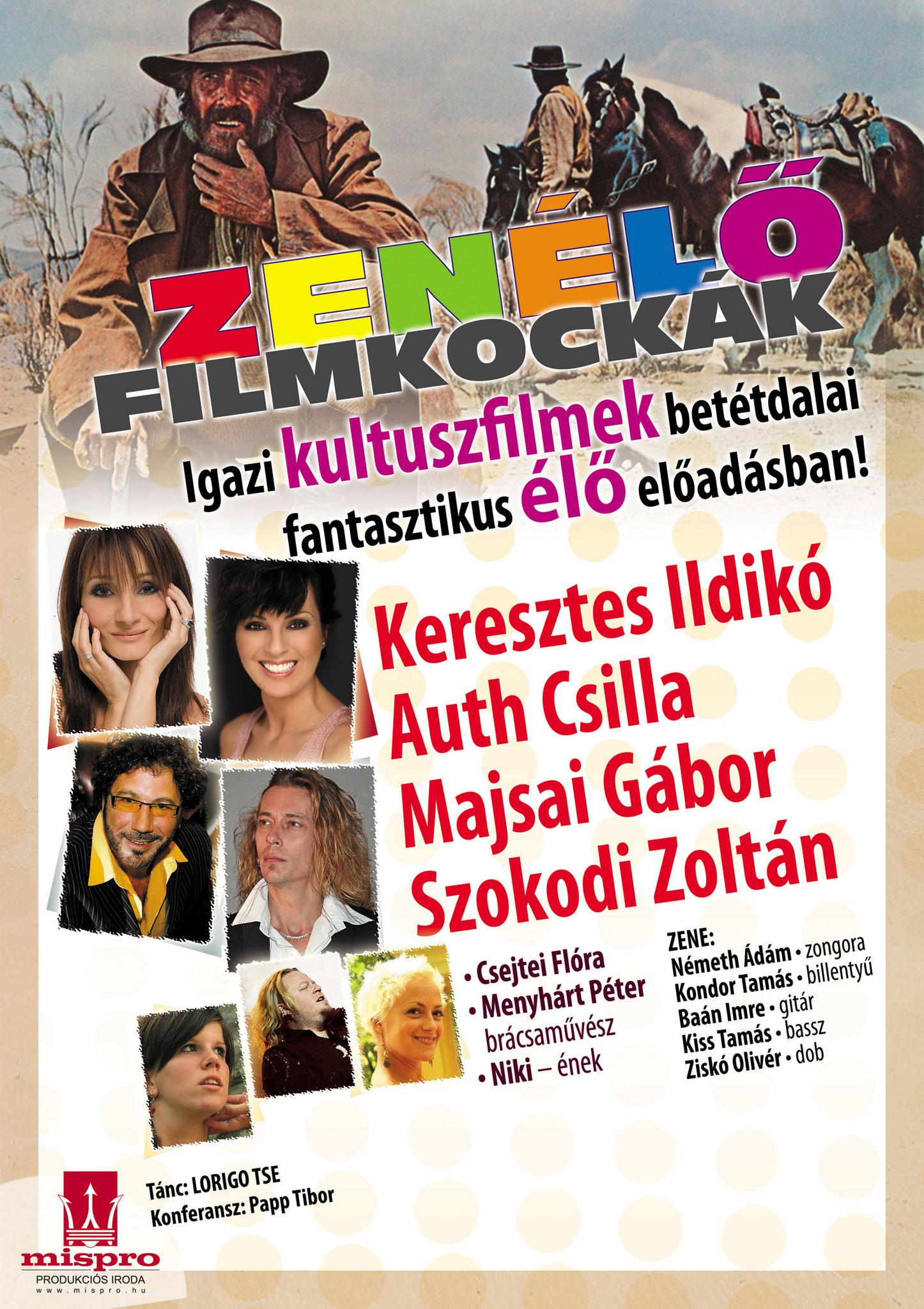 Május 17-én csütörtökön, 19 órai kezdettel az MMIK színházterme ad otthont a nagy érdeklődésre számottartó, immár több előadást is megért zenés-filmes eseménynek, a Zenélő filmkockáknak. Huszonnégy filmsláger hangzik fel a színpadon, olyan kitűnő énekesek tolmácsolásában, mint Keresztes Ildikó, Auth Csilla, Majsai Gábor és Szokodi Zoltán.