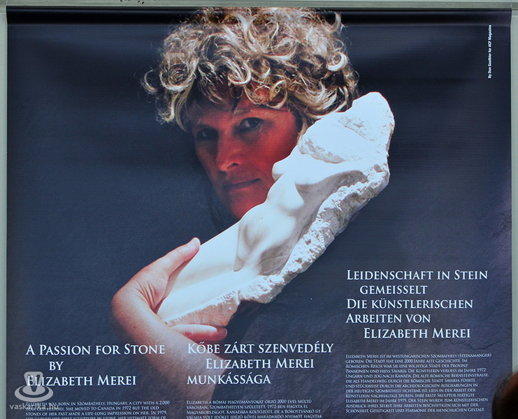 Az Iseum Savariense Régészeti Műhely és Tárház impozáns épületében kapott ideiglenes otthont Elizabeth Merei: „Kőbe zárt szenvedély" (A Passion For Stone) címre hallható kiállítása. A természetből kiemelt és már-már természetellenesen pazar alkotások sok érdeklődőt vonzottak a történelmi emlékhelyre. Egyszerre groteszk és kifejező minden szobor, kétélű jelentéstartalommal. Az egyik oldala markánsan durva, a másik finoman csiszolt, közben pedig a megelevenedő érzelmektől - mint a bánat, az eksztázis, vagy a szenvedély- válik teljessé a látvány. A tizenkilenc szobor némelyike tömör, másik áttetsző, anyagukat tekintve megtalálható bronzból öntött, afrikai wonderkőből készült, dél-amerikai szappankőből formázott, és többféle alabástromból faragott is.
