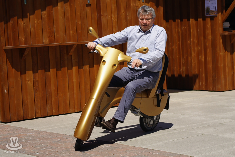 A téren feltűnt néha egy arany színű motor, lassan és csendben. Teljesen praktikus megoldás lenne használni a mindennapokban, hiszen amint eljutottunk vele A-ból B-be, lazán össze lehet csukni, és akár az irodába is be lehet tolni, mint egy gurulós bőröndöt. Csak remélhetjük, hogy a jövő tényleg az ilyen egyszerű, környezetbarát járműveké.