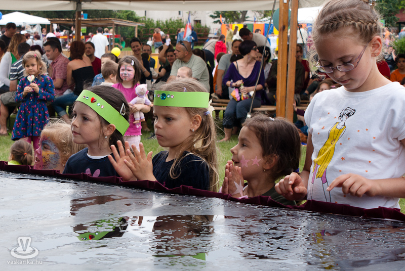 A kézműves sátorban agyagozhatnak, bőrözhetnek, gyöngyöt fűzhetnek, és vesszővel dolgozhatnak a nagyobbak, míg a kisebbek óriás rajzlapon készíthetik el festményüket.