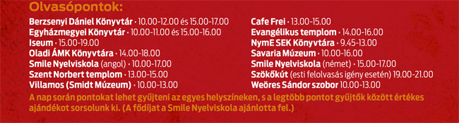 11.40-13.10 Felolvasás felső tagozatosokkal Hozd magaddal kedvenc könyvedet, és oszd meg másokkal is annak egy részletét!