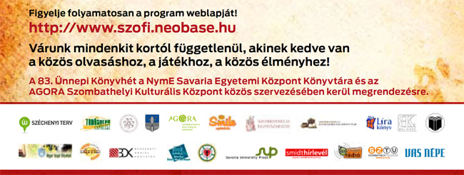 Szombathelyen, június 7-11 között kerül megrendezésre 83. Ünnepi Könyvhét a NymE Savaria Egyetemi Központ Könyvtára és az AGORA Szombathelyi Kulturális Központ közös szervezésében.