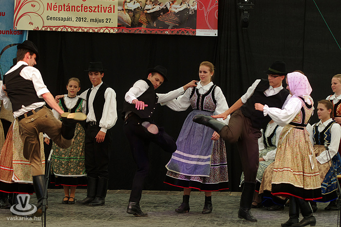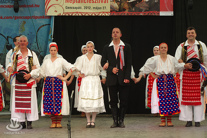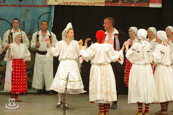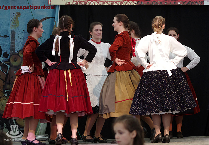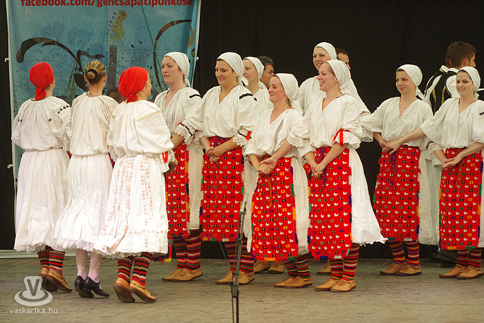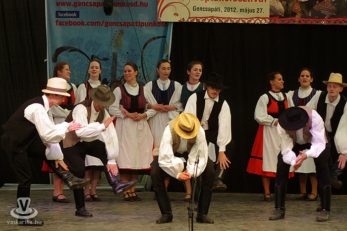 A műsort a helyi Kökörcsin együttes nyitotta, de láthattunk Csíki táncokat a Béri Balogh Ádám Néptáncegyüttestől, és volt, hogy a színpadot a Pesovár Ernő AMI Kistücsök csoportja vette birtokba. Mindig öröm látni, hogy a felnőttek mellett az ifjabb korosztály is mennyire színvonalas műsorral készül, hiszen amit ők most megtanulnak, és egy ilyen találkozó alkalmával ellesnek az idősebbektől, azt egyszer majd ők fogják továbbadni. A magyar csoportok mellett fellépett Gradisce Horvát Kulturális Egyesület, akiktől lakodalmast láthatott a nagy számú érdeklődő közönség. Ritka pillanat, hogy a verőfényes napsütésben egy ingben nézzük, ahogy fellobban az adventi koszorú négy gyertyájának lángja, de a Kapuvári Néptáncegyüttes Téli népszokások című csokrában itt Gencsapátiban ez is lehetséges volt. Az Ungaresca Táncegyüttes bukovinai táncokat mutatott be, a program zárásaként pedig ismét a helyiek léptek a színpadra, és megmutatták, hogy járják ők az isaszegit.