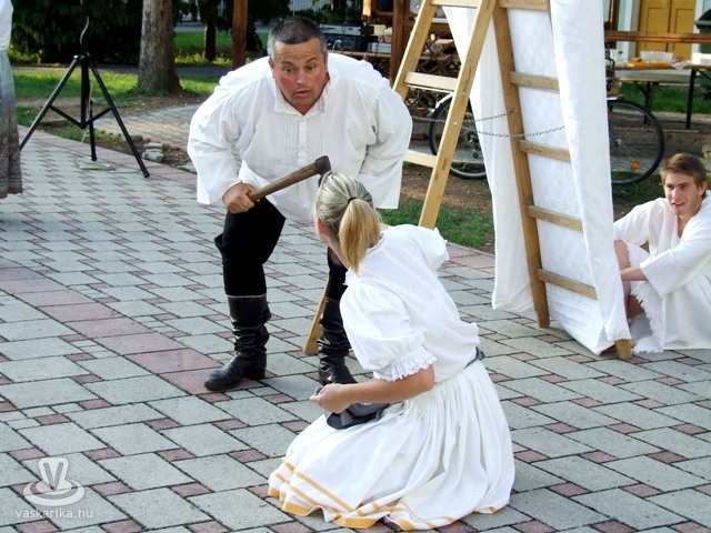 Legelső darabunk Luigi Pirandello A korsó című komédiája volt, amit nagy sikerrel mutattunk be a kíváncsi közönségnek a Művelődési Központ melletti téren.