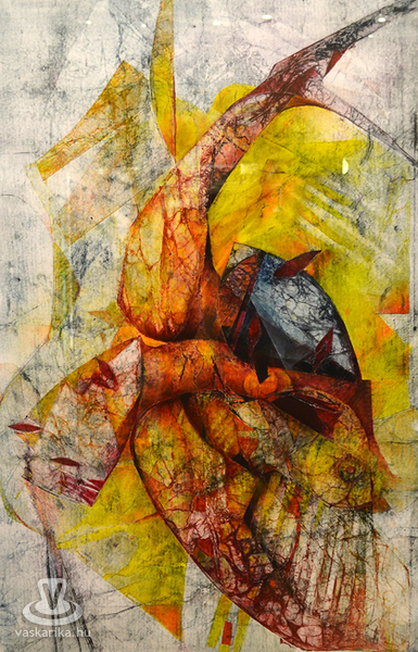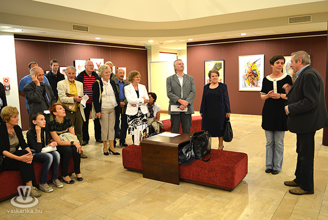 Első körben mégis a képzőművészettel indult az este, Kamper Lajos grafikusművész jóvoltából a rézkarcolás rejtelmeiről hallhattak és láthattak újdonságokat az érdeklődők. „Ezen kívül pedig megpróbáljuk felvillantani azt a világot, amit Lajos a mindennapjaiban is megél"- nyitotta monológját Oroszy Csaba. Már a húszas évei elején vonzódott a grafikához, majd találkozott olyan kortárs grafikusokkal, akik elég inspirációt adtak neki ahhoz, hogy elinduljon ezen az úton. Rögvest a rézkarccal kezdett, ezek közül nem egy már a nemzetközi mezőnyben is megmérettette magát. Kiállításai voltak Luganoban, Belgiumban, Japánban, amikről nagyon jó visszajelzéseket kapott, de mi is az a rézkarc? Video összeállítás következett, amiben a művész műhelyében ismerhette a hidegtű eljárást, a borzolást és a savval maratást. Vörös vagy sárgaréz lemezre karcolt, majd bemutatta az eljárások eszközeit, elmondta milyen felületet milyen kellékkel lehet létrehozni. A végére a rézlemez befestése, és a nyomtatás maradt.