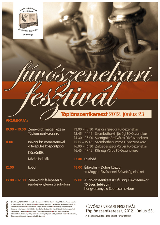 13:00 Térzene, Főzőverseny, Faluvacsora előkészülete (Főzőversenyre nevezés a Tekézőben 21-ig)
