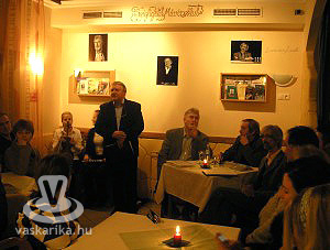 | Nagy Dezső, a Művészklubnak otthont adó Szigligeti Vendéglő tulajdonosa nyitja meg az irodalmi estet |