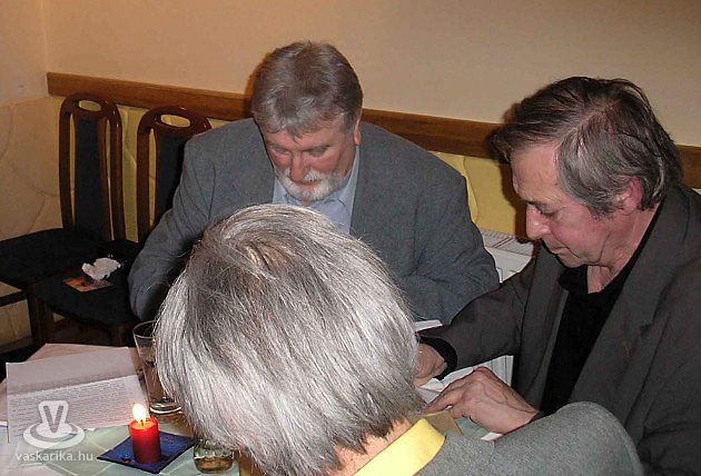 Jordán Tamás kedélyesen mesélt, Devecsery László és Balogh József felkészültségből színjelest kaptak, mi pedig nem csak egy kellemes este emlékével a szívünkben térhettünk haza, hanem egy fénykép boldog tulajdonosai is lehettünk, melyen a négy úriember látható a beszélgetés kezdete előtt.