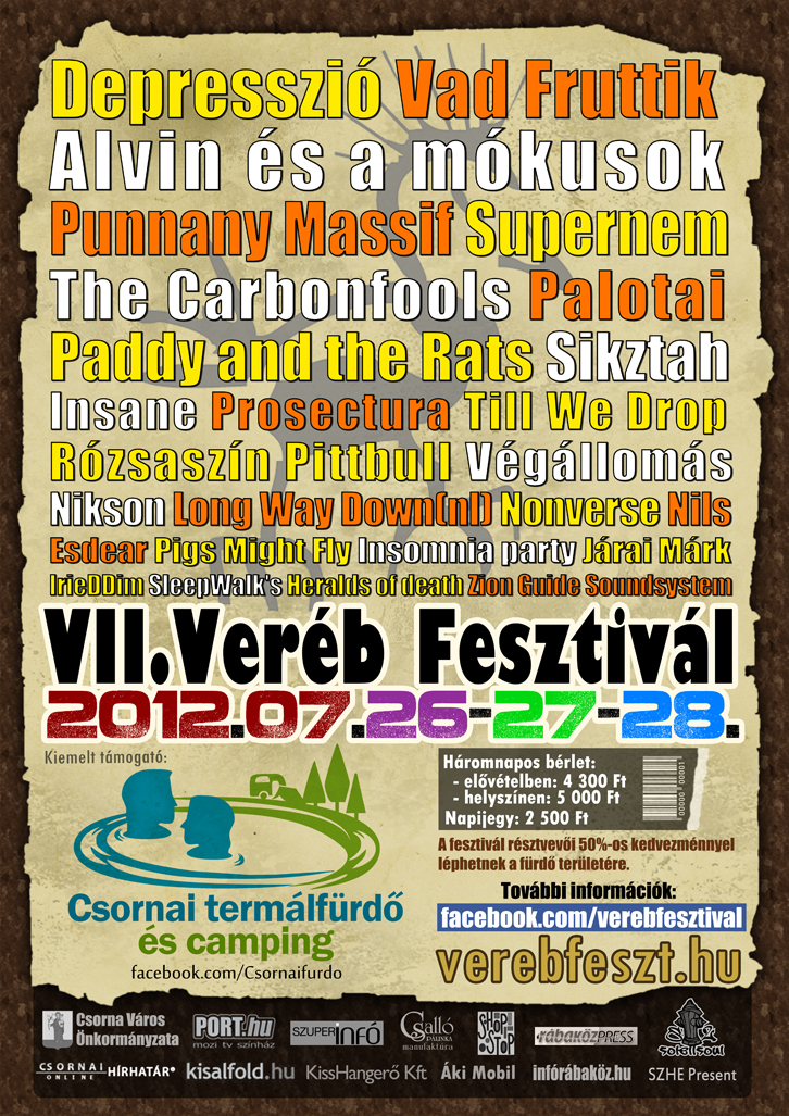Július 26-án csütörtökön megnyitja kapuit a VII. Veréb fesztivál. A fesztiválozók déltől vehetik birtokba a Csornai termálfürdő és camping területét.