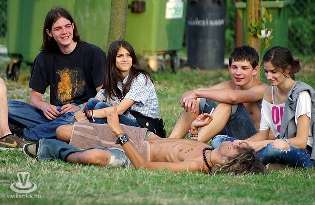 Újabb próbálkozók a kisszínpadon, újabb fél óra, amíg feltölthettük az ugrálástól igencsak megfogyatkozott energiakészleteinket. A tömeg ilyenkor a sátorból átmozdult a padokra, amik közül a mögöttünk lévő üresen állt, ezt használták ki a „csókolózós párok", akik 10 percenként váltották egymást eme ülőalkalmatosságon. Mondhatni váltófutásban nyomták az egymásra tapadást a kellemes állapotban lévő fiúk és lányok. Olyan is akadt, aki kreatív módon szörfdeszkának használta a padot, és lelkesen evezett kezeivel a fesztivál levegőjében. Éjfél közeledtével és az alkoholos italok fogyásával párhuzamosan a fesztivál területén különösen erős gravitáció hatott a "túl jó nekem" állapotú fesztiválozókra, felsegítésük után pedig a nadrágjukra. Ezt a "fesztiválbalesetet" jó eséllyel egyszer mindenki átéli, arra viszont nincs nyomdaképes kommentárunk, hogy van, aki élvezettel és büszkén meg is örökíti szerencsétleneket... nesze neked fotósetika. A T. Olvasó pedig ne általánosítson: nem minden fotós leli ebben örömét, és még kevesebb vallja, hogy erről szól a fesztivál...