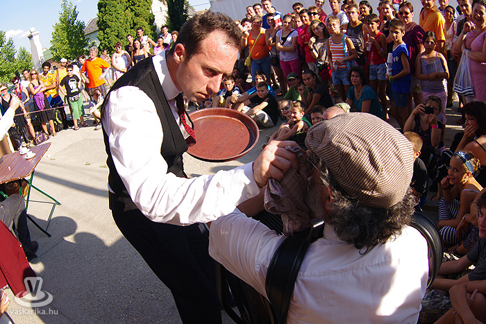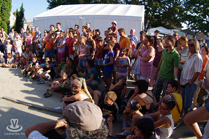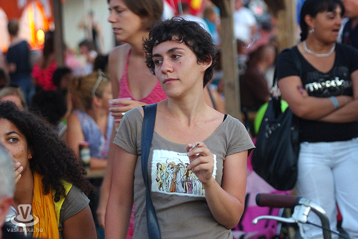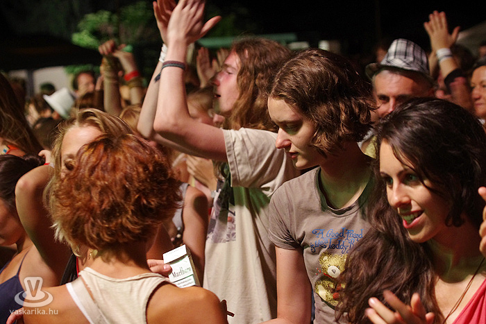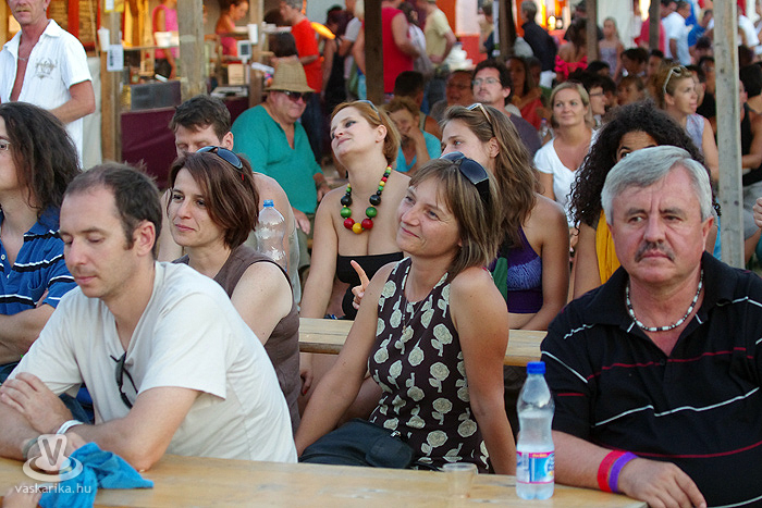 A csütörtök Nagyharsányban tartott minket, beleszippantottunk a fesztivál levegőjébe, megízleltük a francia utcaszínházak világát - Compagnie Les Apostrophés -, éjjel pedig a katlanbusszal helyszínről-helyszínre vándorló francia őrületet, a Wombo Orchestrát, akik szédületes karneváli dzsesszt varázsoltak a focipályára, amelyben New Orleans összeborult a legsúlyosabb hiphoppal, a big bandek világa a fiesztákéval. Mindezt a Besh o Drom koncertje után, akikre úgy táncolt a közönség, hogy bármely világmárka izzadásgátlóval ellátott dezodora is csődöt mondott volna. A "Kecskés" után Kecskést, és még Kecskést akart a közönség, de helyette kapott "Büntetőt" és "Tortapapírt", ráadásként pedig a "Meggyújtom a pipám" okozott a pólókon füstmentes foltot, a táncos lábakba pedig bekódolta a balkáni folkot.