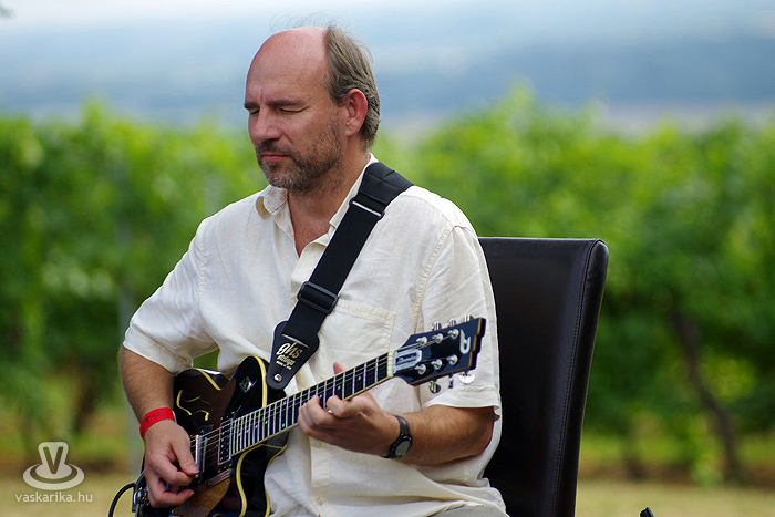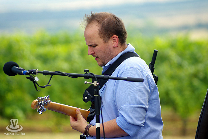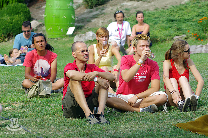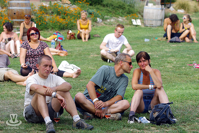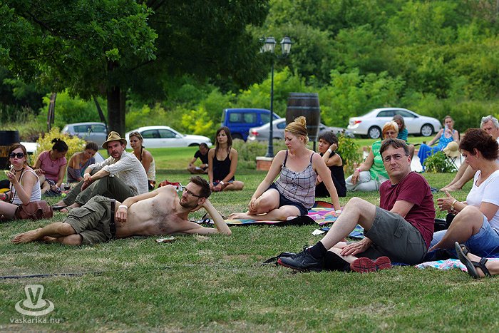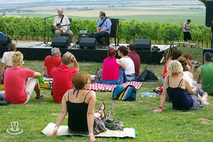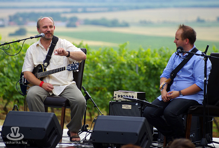 - Én meg kifeküdtem péntek délután a kisharsányi Vylyan Teraszra. Meg szombaton is. És ma is odamegyek. Rádborul az égtakaró - arra vigyázz, hogy a borod ne! - szemez veled a nap, utána meg te szemezel a locsolóval, mert hőségterror van. Dolgoznak az "ördögök" rendesen a katlanban, pirul a "valagunk", Bélám! Szóval Vylyan Terasz és big henye. Pénteken Juhász Gábor és Gyémánt Bálint gitárduózott. Megidéztek Cseh Tamás dalokat, plusz saját számaik is kergetőztek a tőkék között. Mindenki kereste az árnyékot, borospohárral a kezében, de hogy mennyire hangulatos tudott lenni a fűbenfekvős-borhörpintős-gitársimogatós délután!? Utána meg toltunk egy veresboros barnamártással bolondított marhapofát, aszalt gyümölcsökkel. Ketten egy adagot, de degeszérzet volt így is. Másnap Böröcz András "hordótárlatát" néztük meg ugyanitt. Meg a marhapofát ismét.
