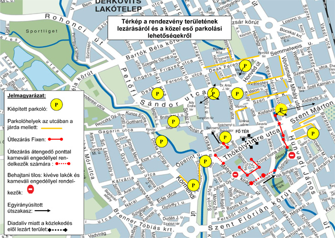 Tájékoztatjuk, hogy meglévő parkoló kártyája, amely lakásához legközelebb eső parkolóra szól, ebben az időszakban a lezárt területhez legközelebb eső parkolókba is érvényes. Kérjük, hogy a lezárt területen lévő üzletek az árufeltöltésüket a karnevál ideje alatt 09.00 óráig megoldani szíveskedjenek.