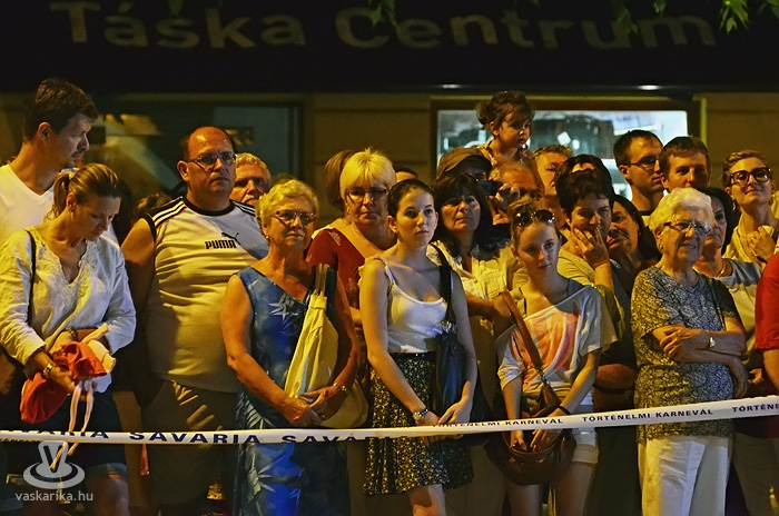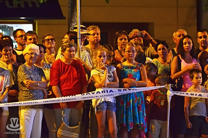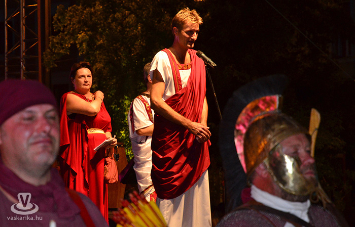 Este fél 9-kor Dr. Puskás Tivadar, Szombathely Megyei Jogú polgármestere korhű jelmezben lépett a mikrofonhoz, és köszöntötte az összegyűlteket - előtte a Legio harci díszben csillogó katonái, míg a háttérben a karnevál szervezői, Szommer Ildikó és Mérei Tamás követte figyelemmel az eseményeket. „A 13. Savaria Történelmi Karneválon érezze mindenki nagyon jól magát. Itt mindnyájan együtt vagyunk. Én kívánom, hogy minden szombathelyinek, minden Vas megyeinek, minden magyarnak, mindenkinek csak jót hozzon...éljen Savaria, éljen Szombathely!" -nyitotta meg az eseményt a város vezetője.