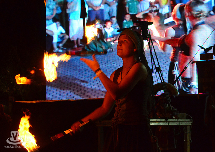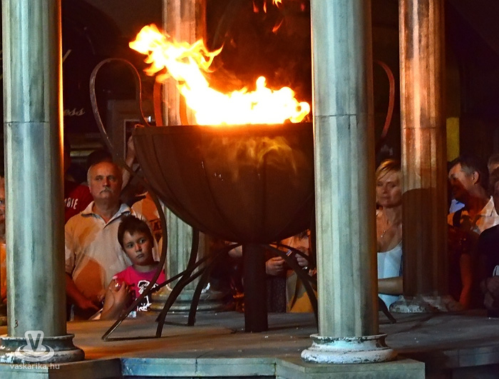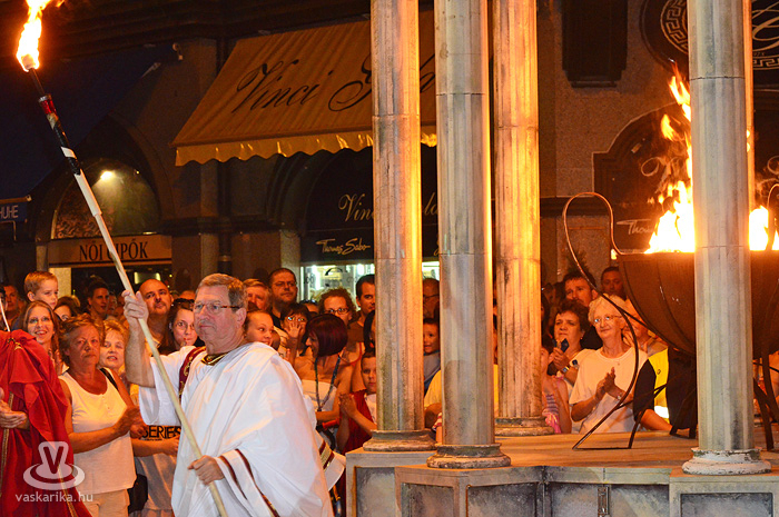 Eldördült az ókori startpisztoly, ami stílszerűen egy lobogó fáklya képében vált valóban rómaivá. A nyitóbeszéd után tűztáncosok forrósították a hangulatot, majd Dr. Puskás Tivadar begyújtotta a karneváli öröklángot.