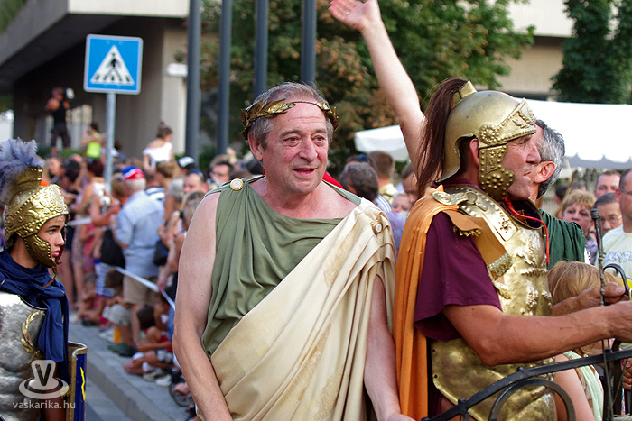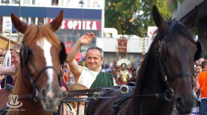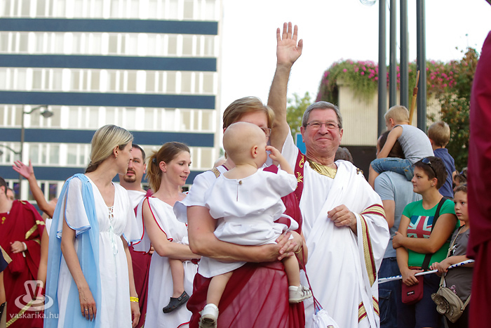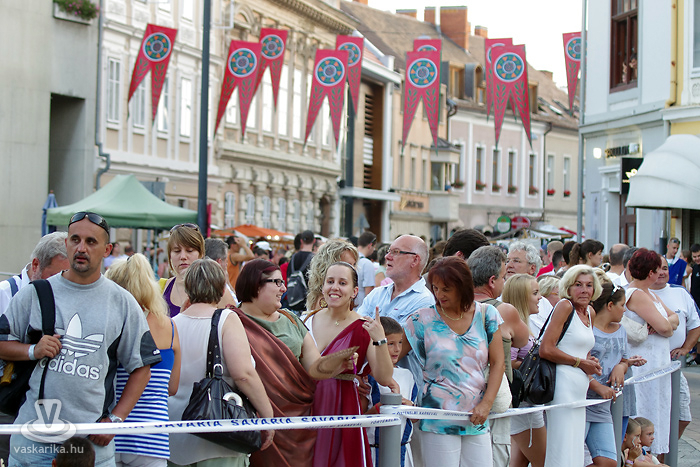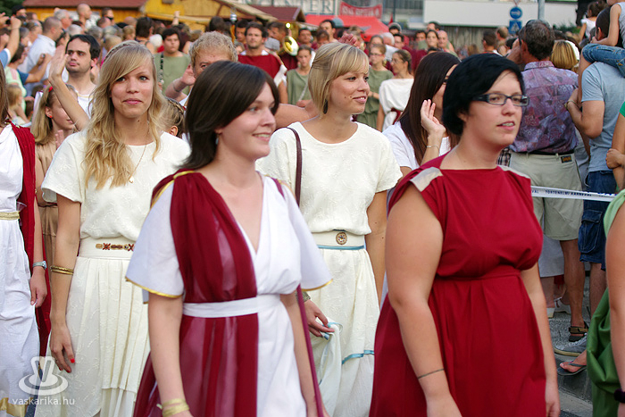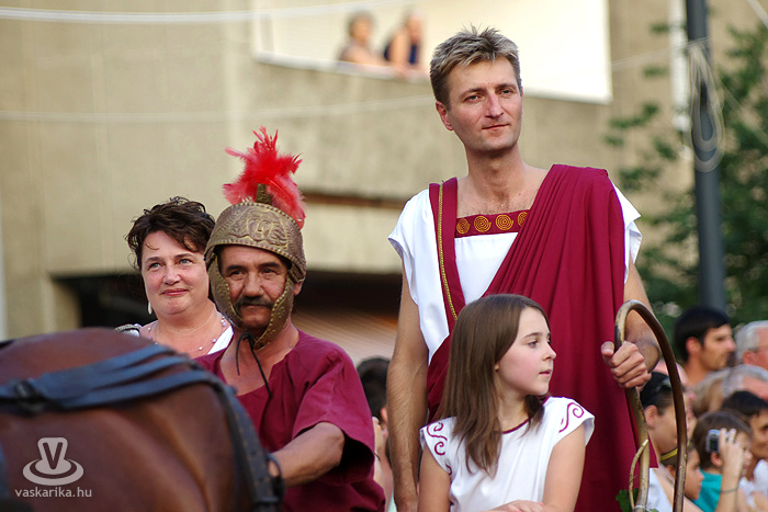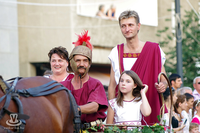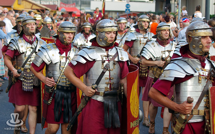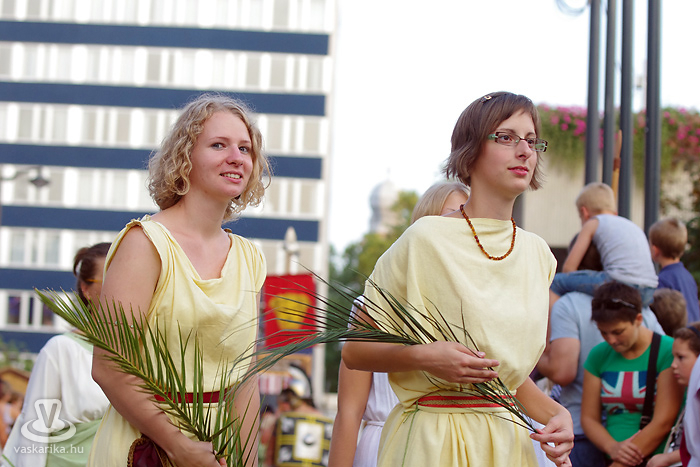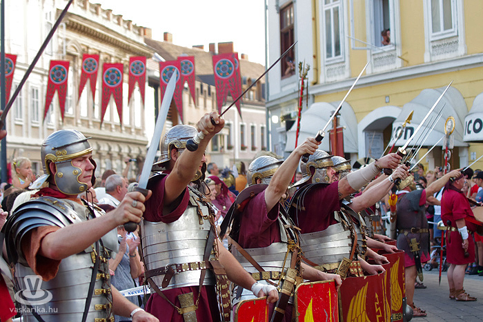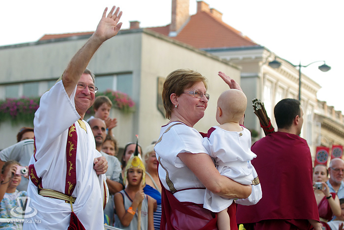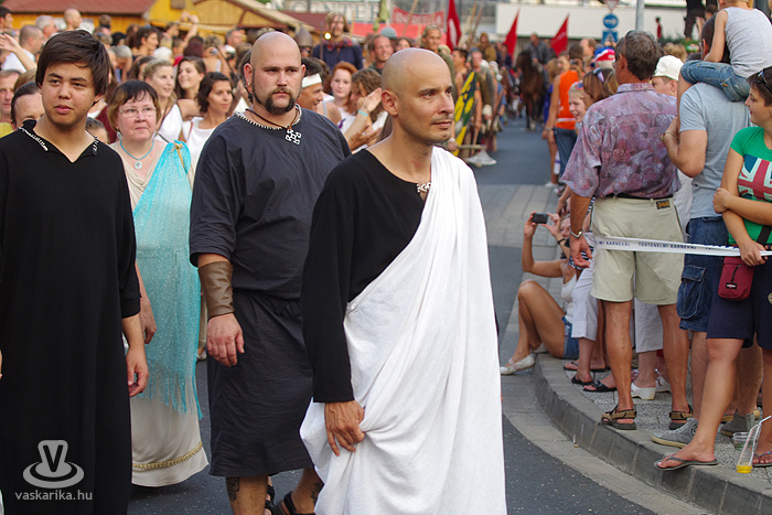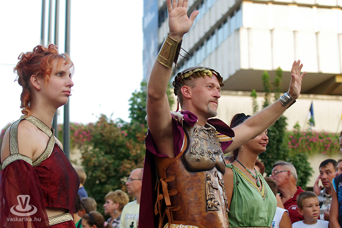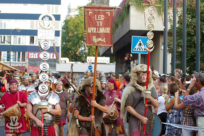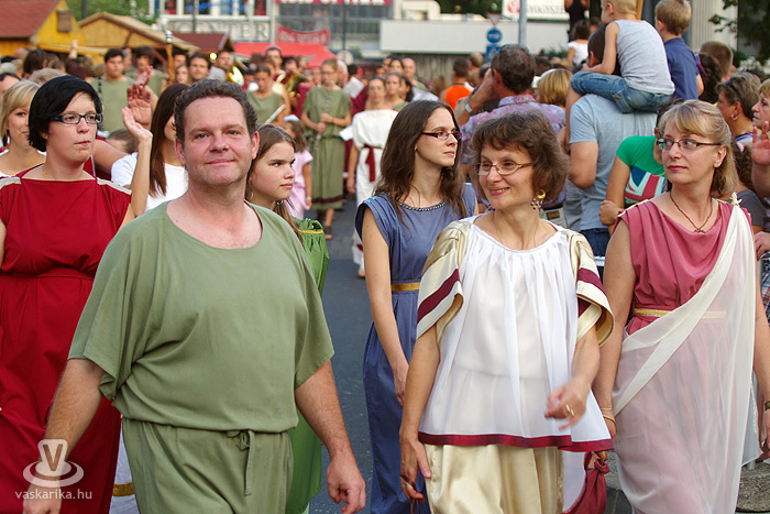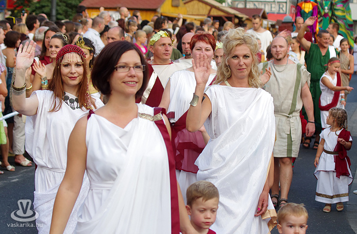 Augusztus 24-én, pénteken 19.00 órakor a lemenő nap fényében indult a karneváli menet a Történelmi Témaparktól, mely az első századtól kalauzolt bennünk végig a történelmen. Idén is közel ezer jelmezes vonult Szombathely belvárosán. A több mint 300 autentikus katonai hagyományőrző - többek között gladiátorok, legionáriusok, keresztes lovagok, germánok, hunok, honfoglaló magyarok, végvári vitézek, muskétások - mellett színészek, csepűrágók, artisták, zászlóforgatók és tűzvarázslók egész serege gondoskodott a nagyérdemű szórakozásáról. A színpompás menetet ezúttal is mutatványosok, gólyalábasok, dobosok, életnagyságú zsiráfok, zenészek, tűz-, és zászlóforgatók hada tette még látványosabbá és hangosabbá.
