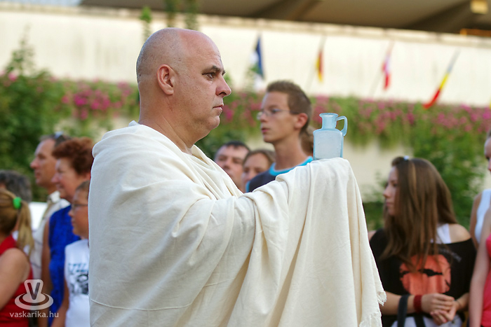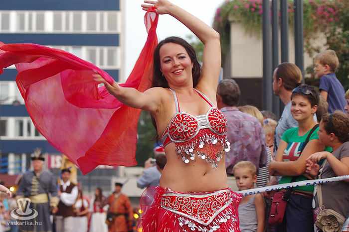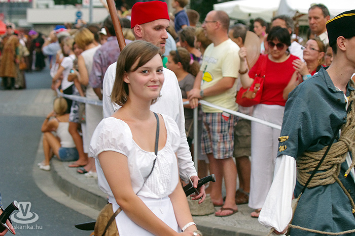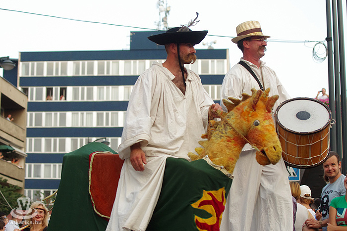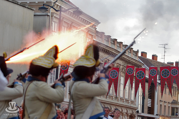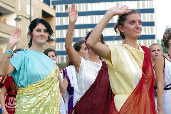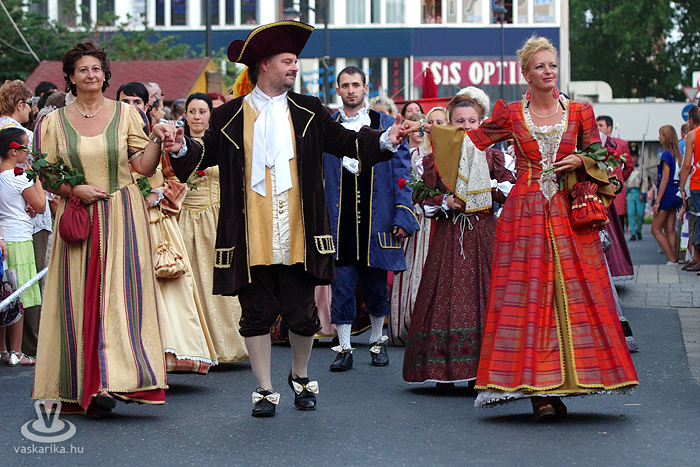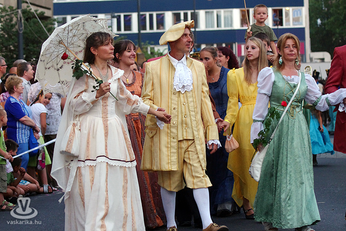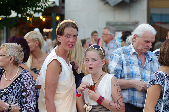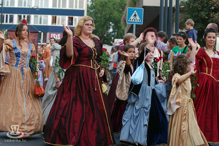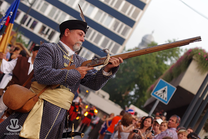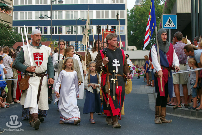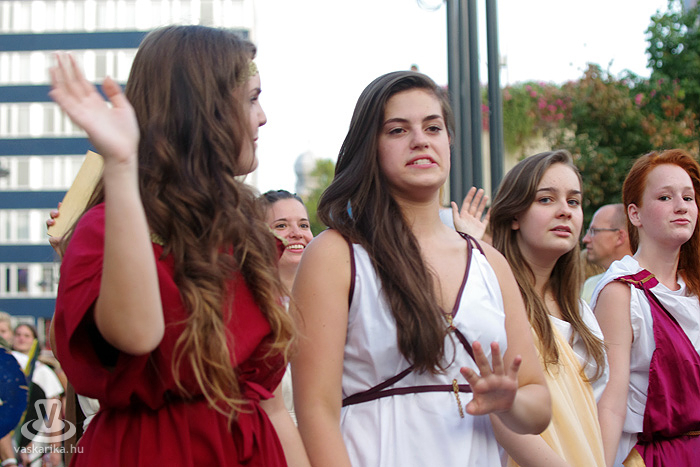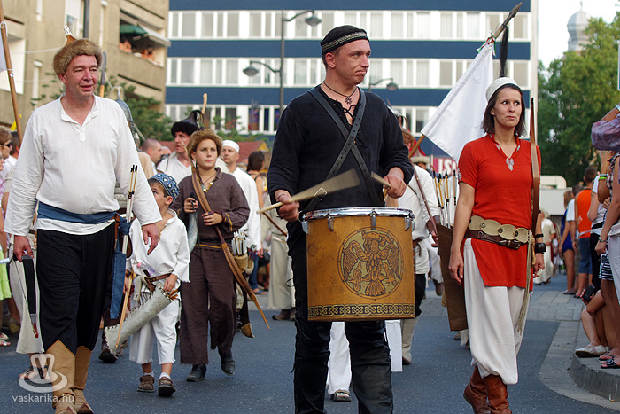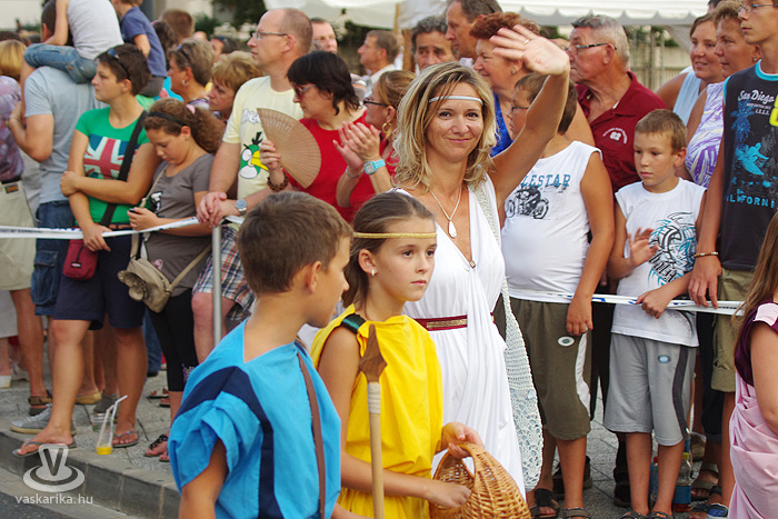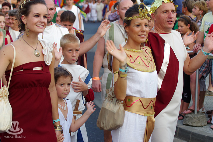 Augusztus 24-én, pénteken 19.00 órakor a lemenő nap fényében indult a karneváli menet a Történelmi Témaparktól, mely az első századtól kalauzolt bennünk végig a történelmen. Idén is közel ezer jelmezes vonult Szombathely belvárosán. A több mint 300 autentikus katonai hagyományőrző - többek között gladiátorok, legionáriusok, keresztes lovagok, germánok, hunok, honfoglaló magyarok, végvári vitézek, muskétások - mellett színészek, csepűrágók, artisták, zászlóforgatók és tűzvarázslók egész serege gondoskodott a nagyérdemű szórakozásáról. A színpompás menetet ezúttal is mutatványosok, gólyalábasok, dobosok, életnagyságú zsiráfok, zenészek, tűz-, és zászlóforgatók hada tette még látványosabbá és hangosabbá.
