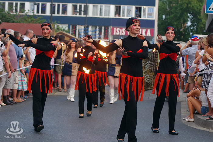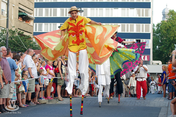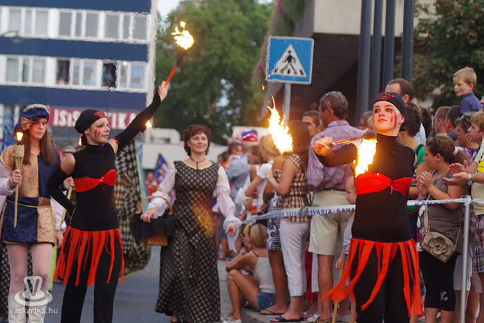 Pénteken 19.00 órakor, a lemenő nap fényében indult a felvonulás a Történelmi Témapark mellől. Idén is közel ezer jelmezes vonult végig Szombathely belvárosának utcáin. A színpompás menetet ezúttal is mutatványosok, gólyalábasok, hastáncosok, zenészek, tűz-, és zászlóforgatók hada tette még látványosabbá és hangosabbá.